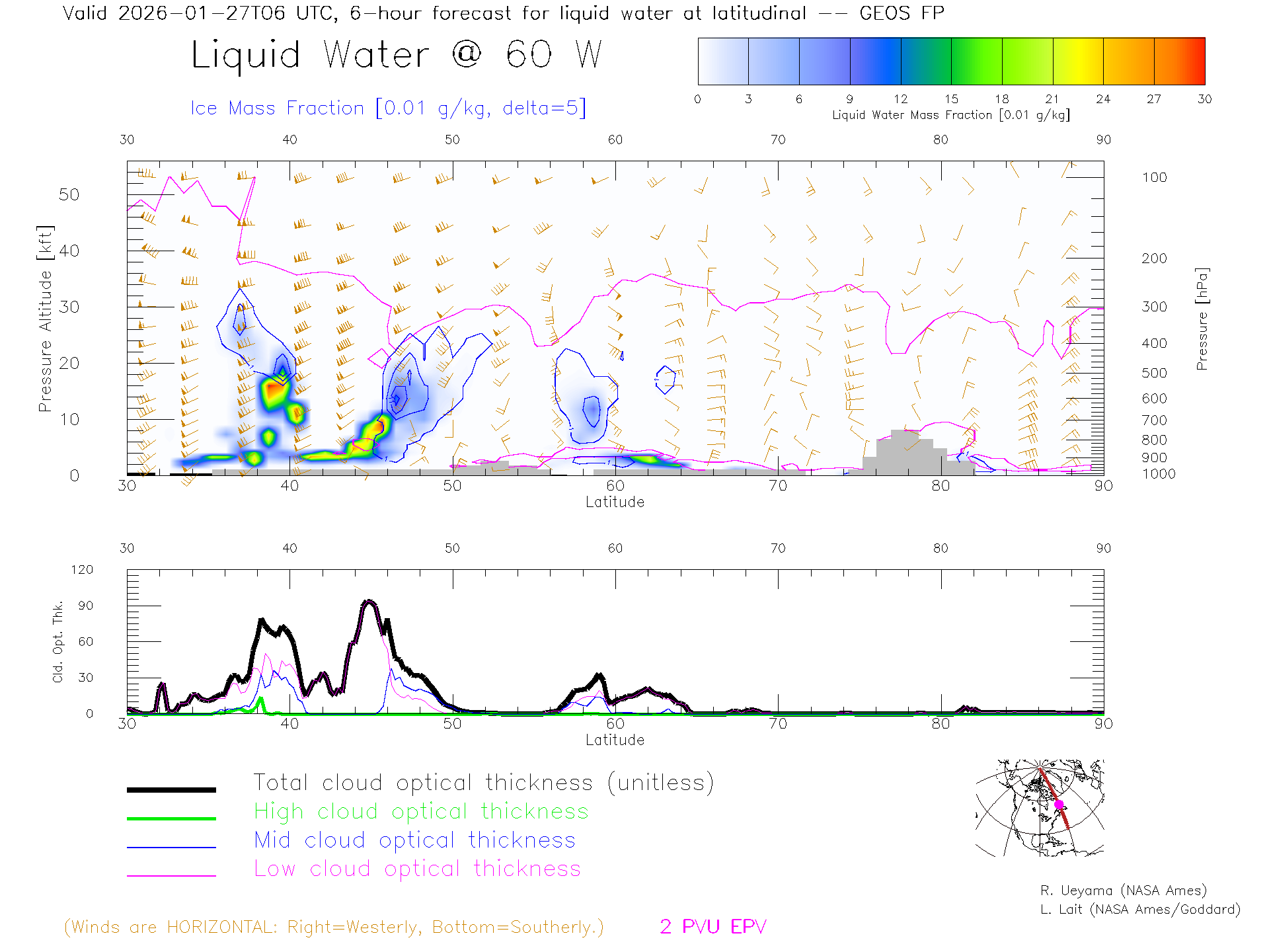 GEOS Forecast Cloud Water Content X-Section (60 W)