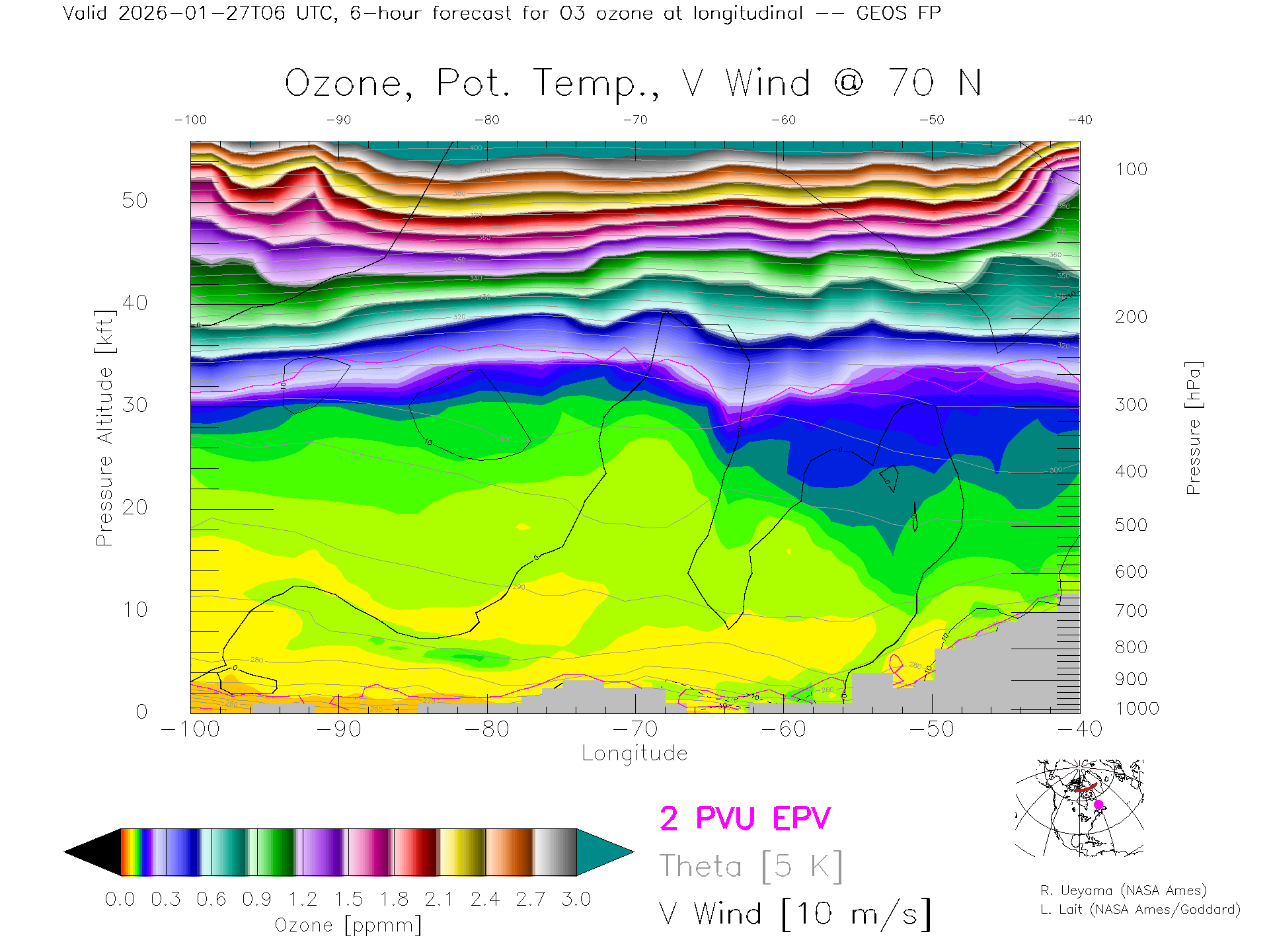 GEOS Forecast Ozone X-Section (70 N)