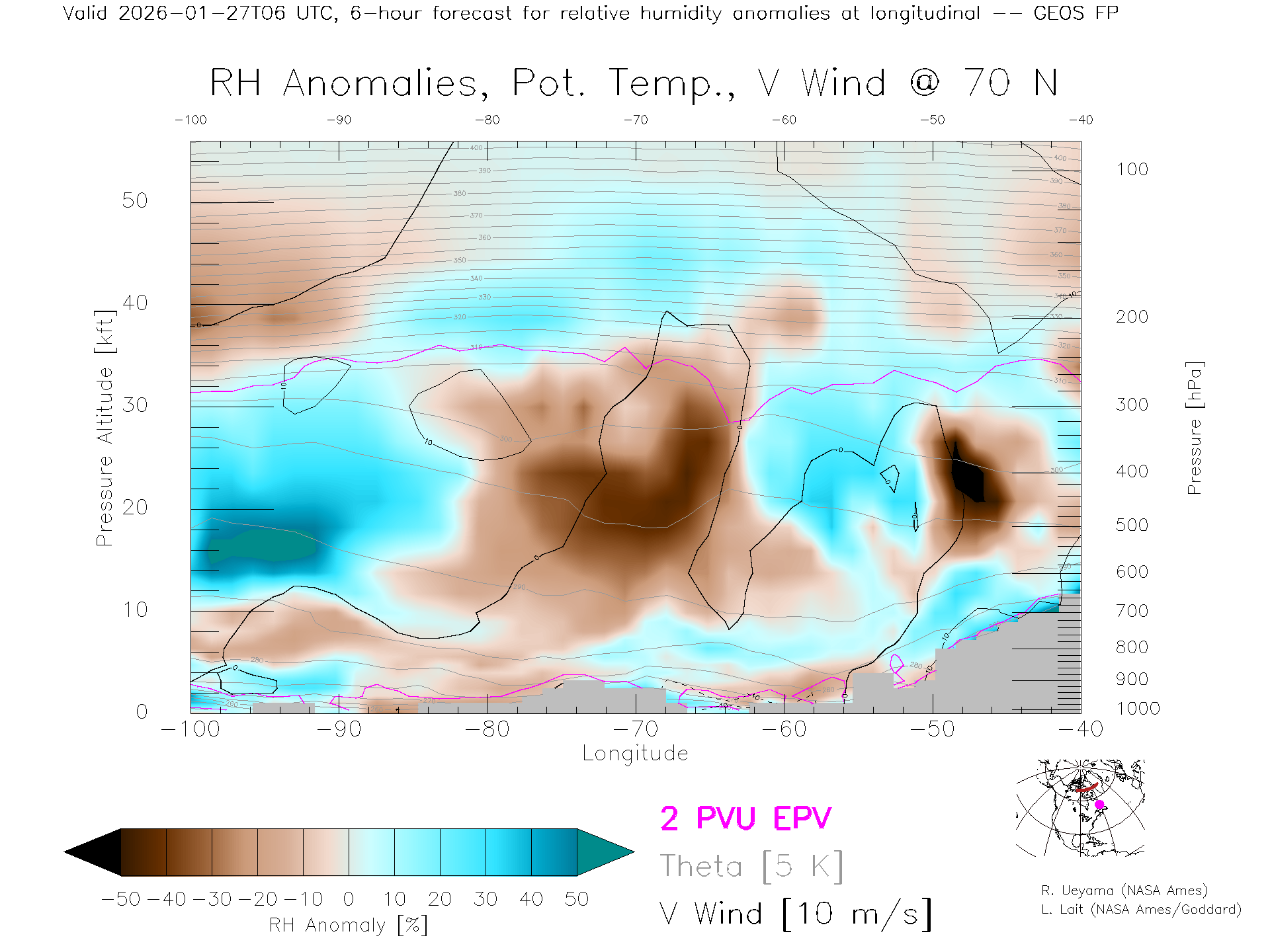 GEOS Forecast Rel. Hum. X-Section (70 N)