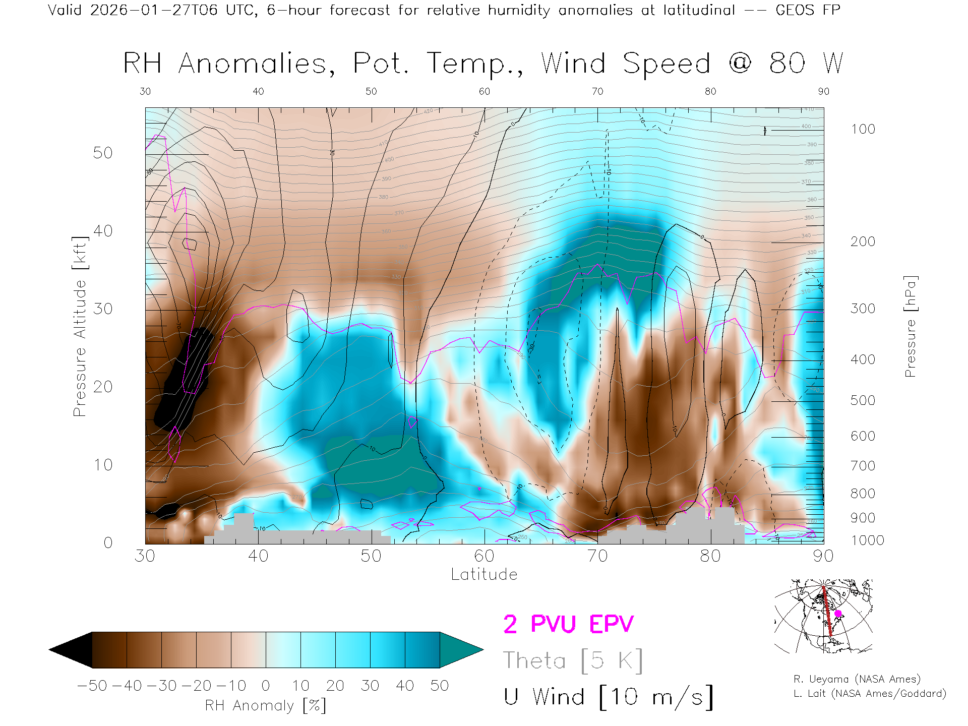 GEOS Forecast Rel. Hum. X-Section (80 W)