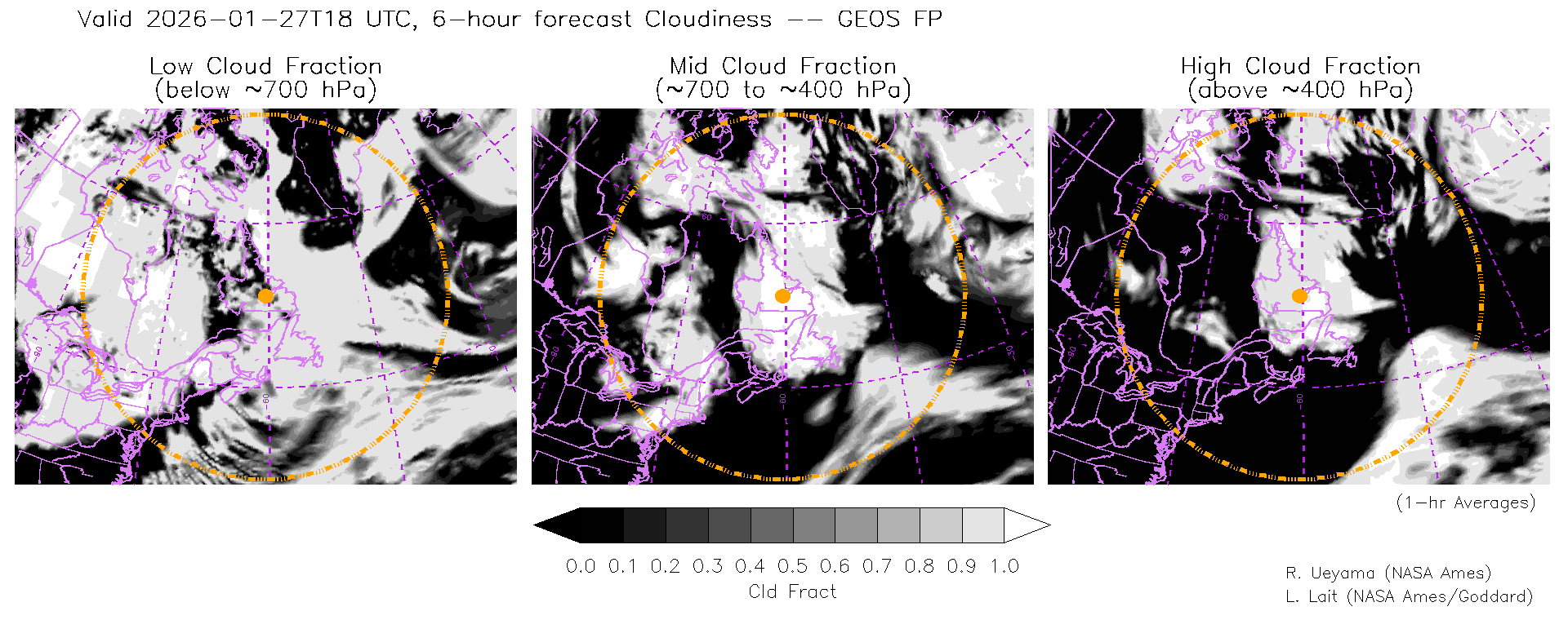 GEOS Forecast Cloud Fraction (High, Mid, Low)