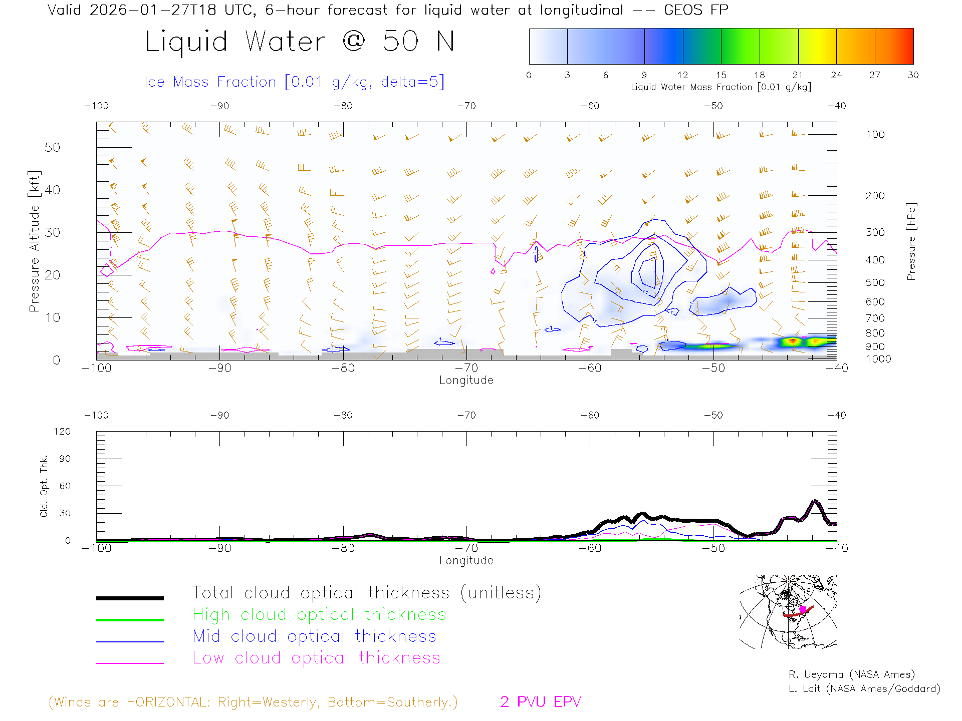 GEOS Forecast Cloud Water Content X-Section (50 N)