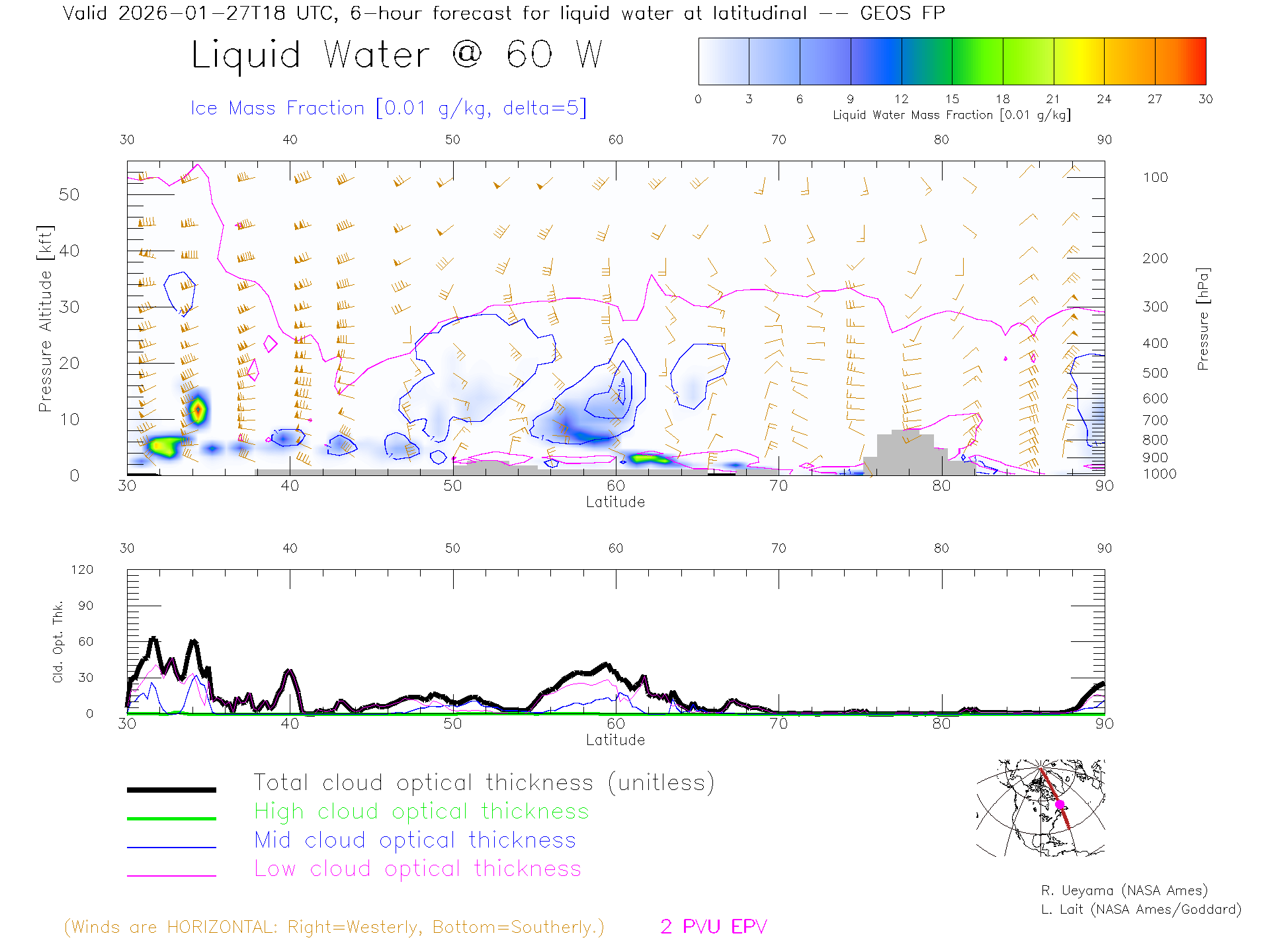 GEOS Forecast Cloud Water Content X-Section (60 W)
