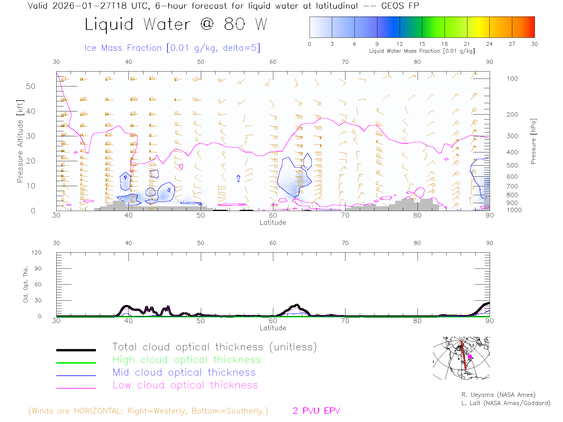 GEOS Forecast Cloud Water Content X-Section (80 W)
