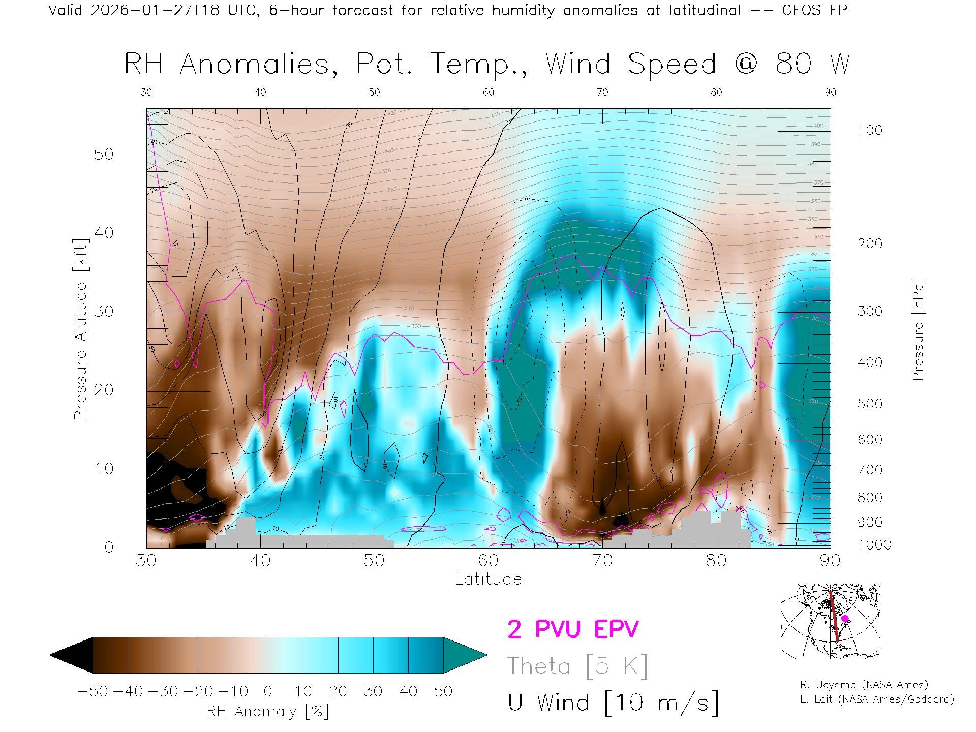 GEOS Forecast Rel. Hum. X-Section (80 W)