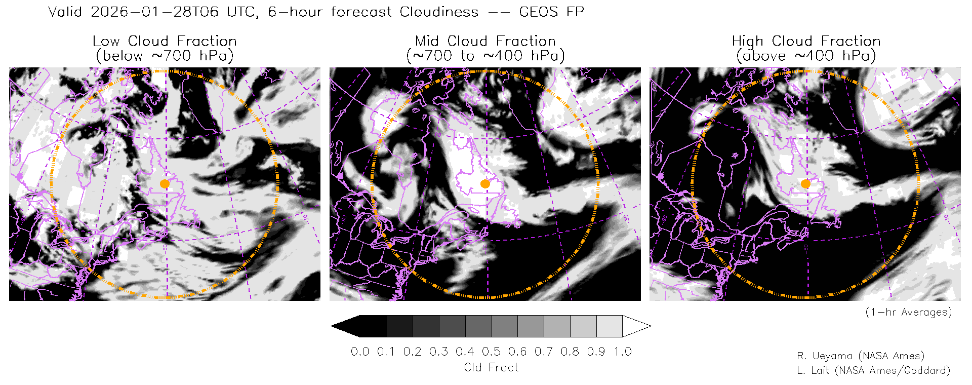 GEOS Forecast Cloud Fraction (High, Mid, Low)