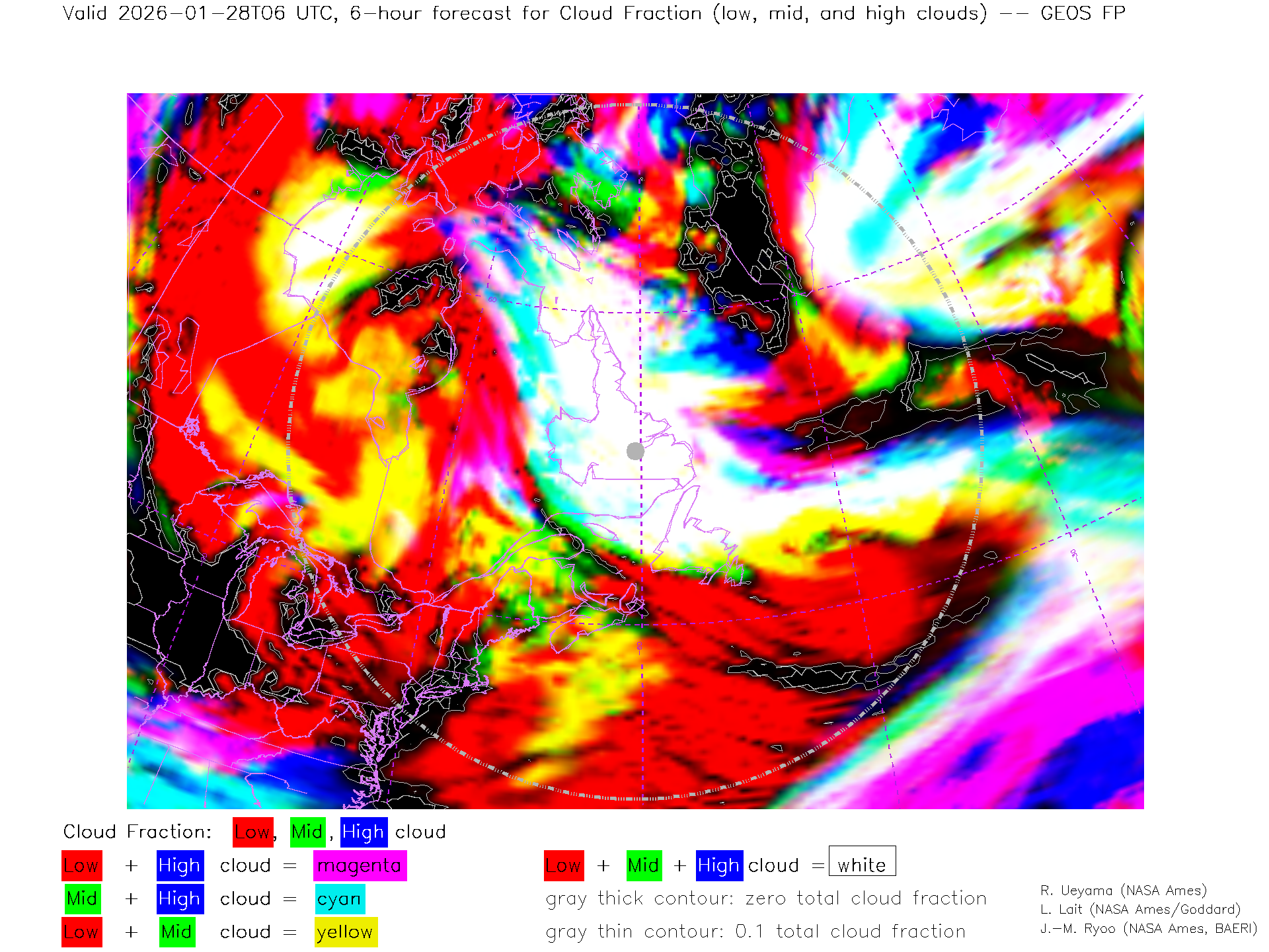 GEOS Forecast Low-, Mid- and High-level Cloud Fraction