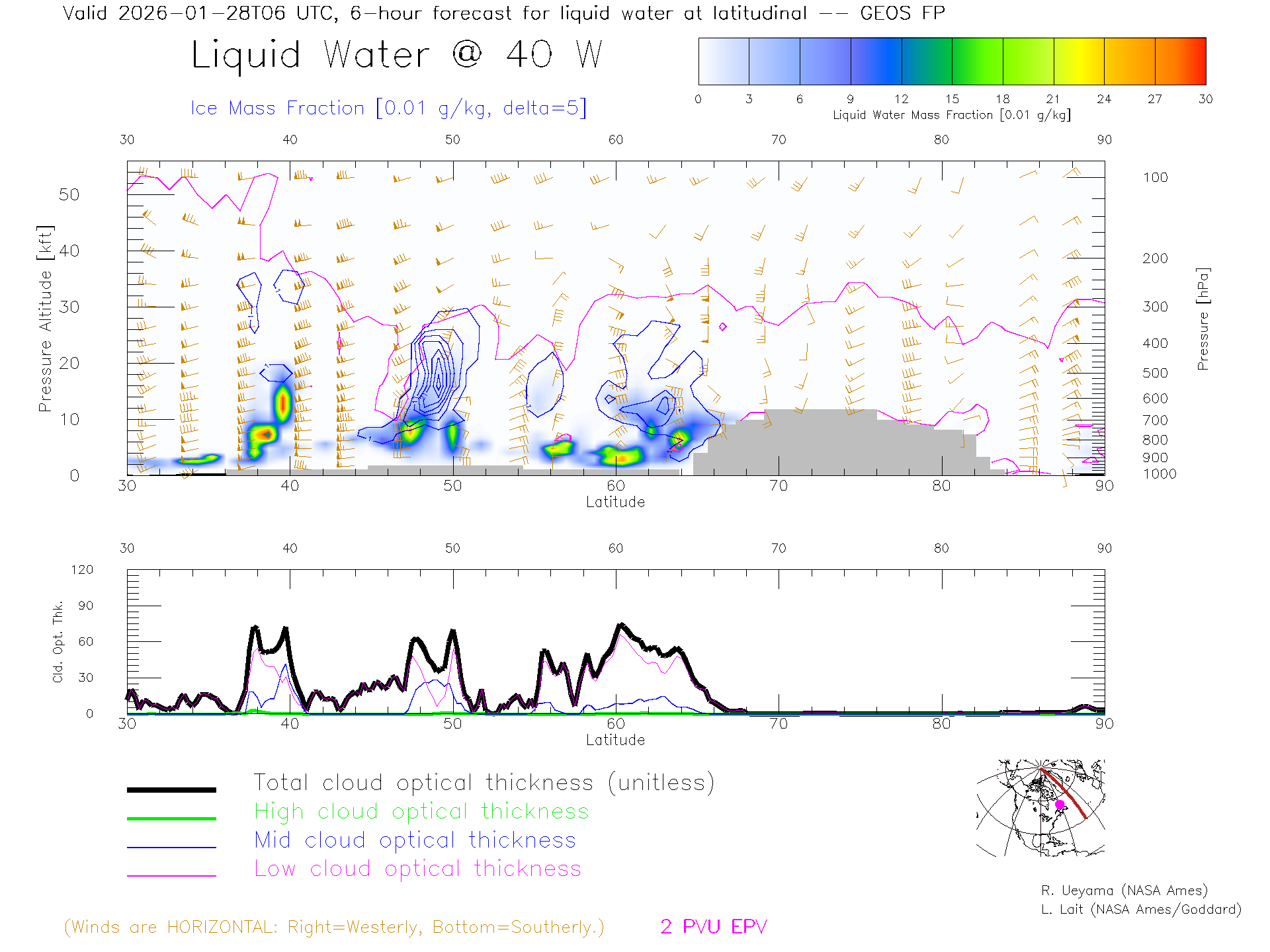 GEOS Forecast Cloud Water Content X-Section (40 W)