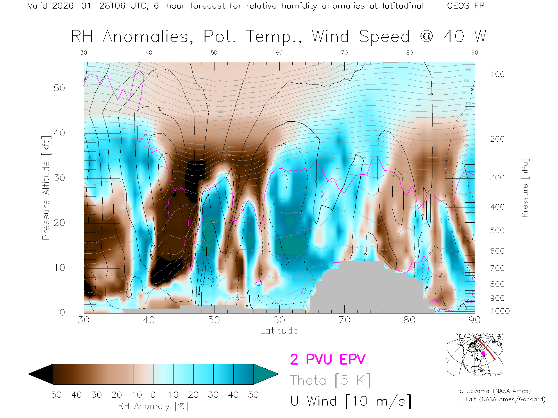 GEOS Forecast Rel. Hum. X-Section (40 W)