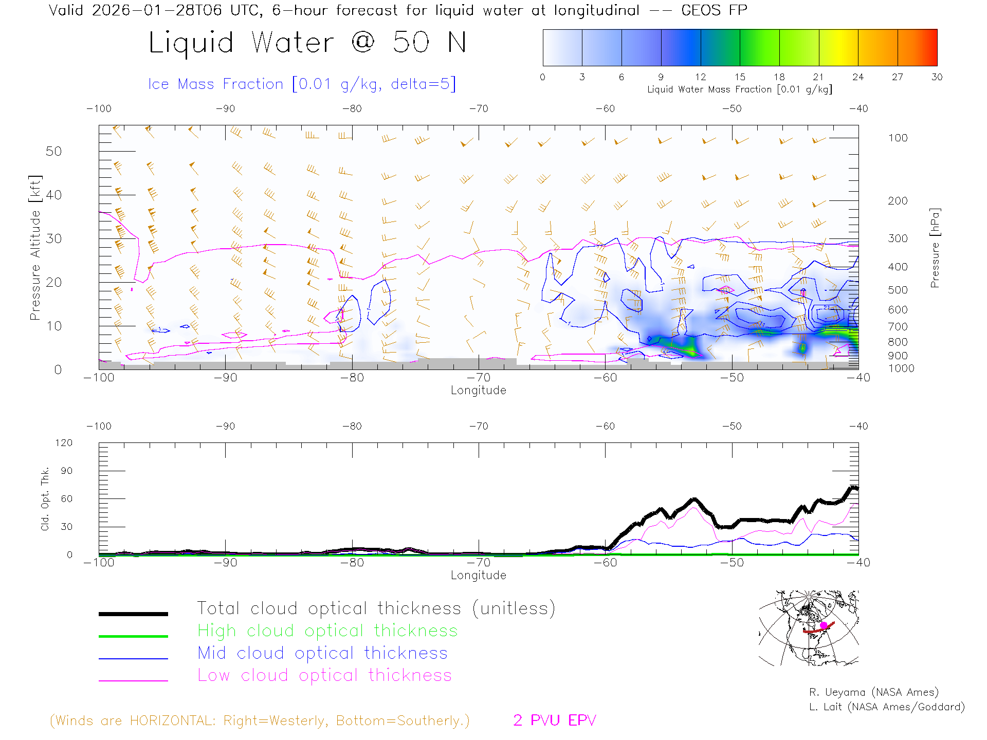 GEOS Forecast Cloud Water Content X-Section (50 N)
