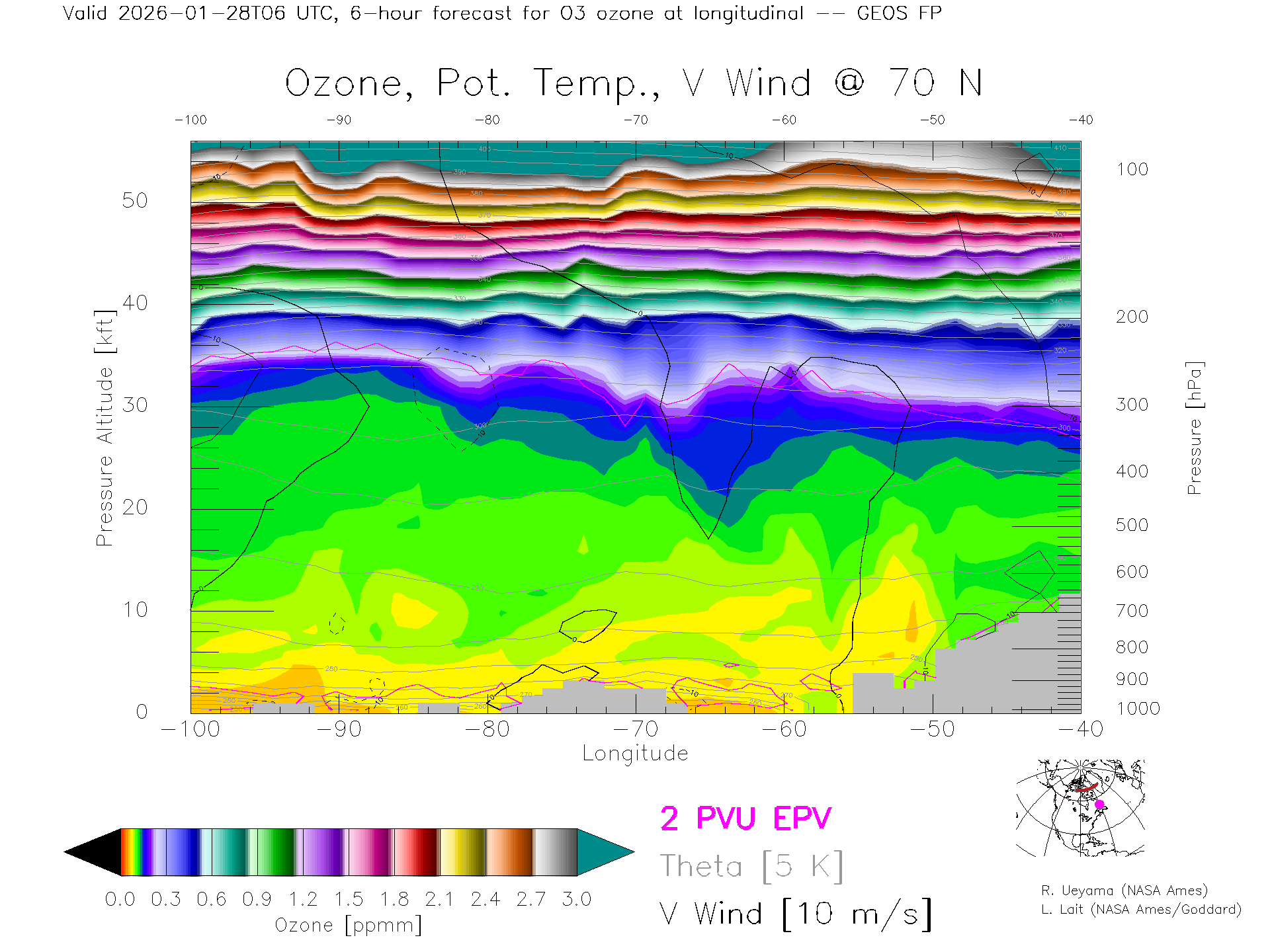 GEOS Forecast Ozone X-Section (70 N)