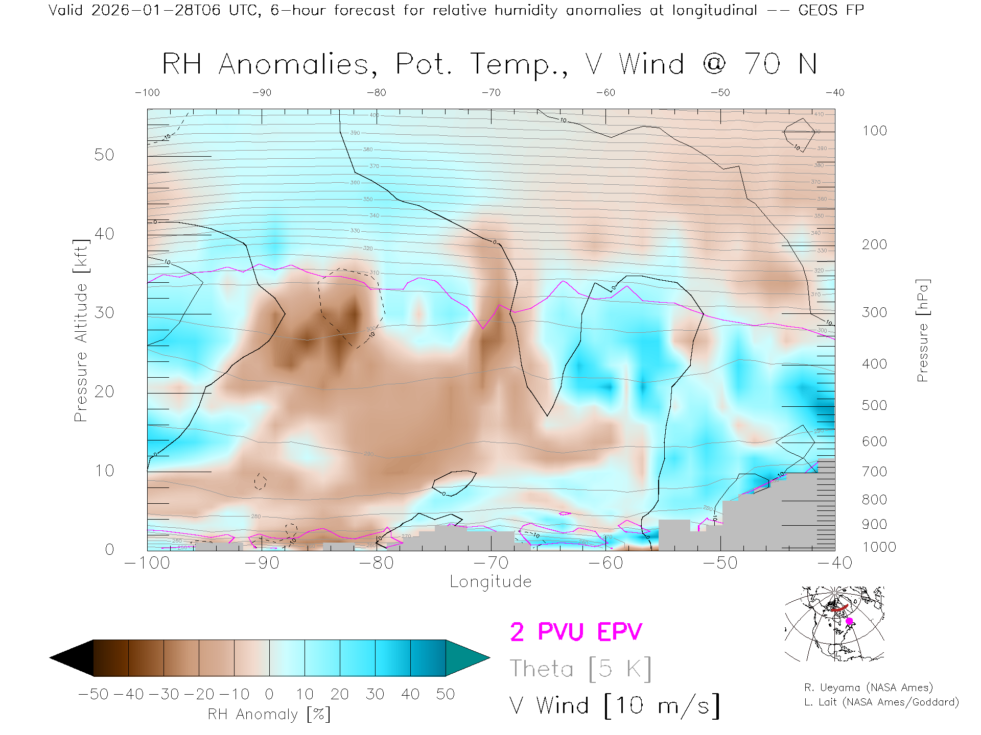 GEOS Forecast Rel. Hum. X-Section (70 N)