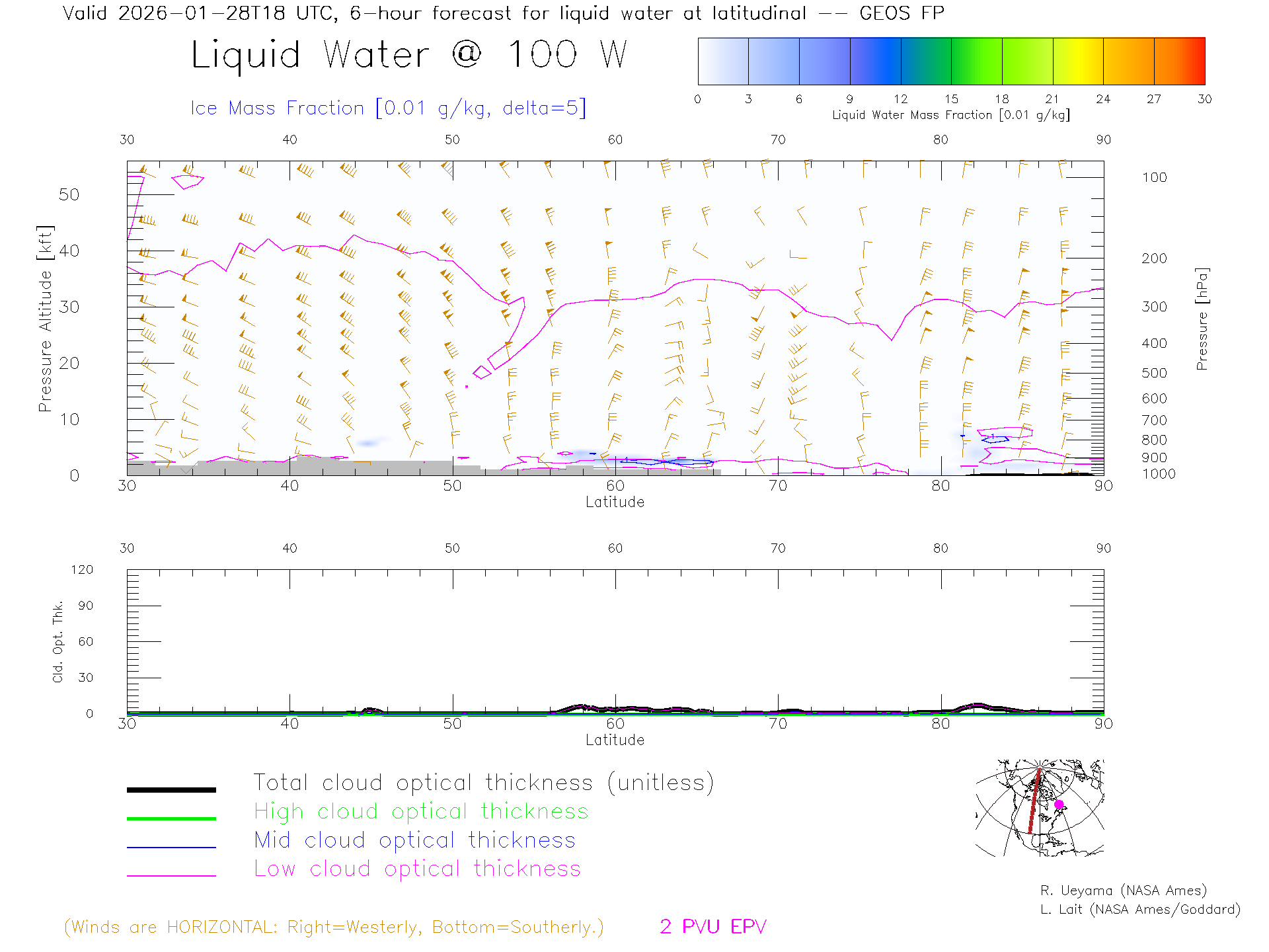 GEOS Forecast Cloud Water Content X-Section (100 W)