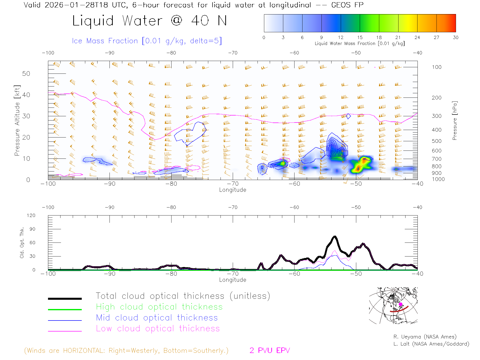 GEOS Forecast Cloud Water Content X-Section (40 N)