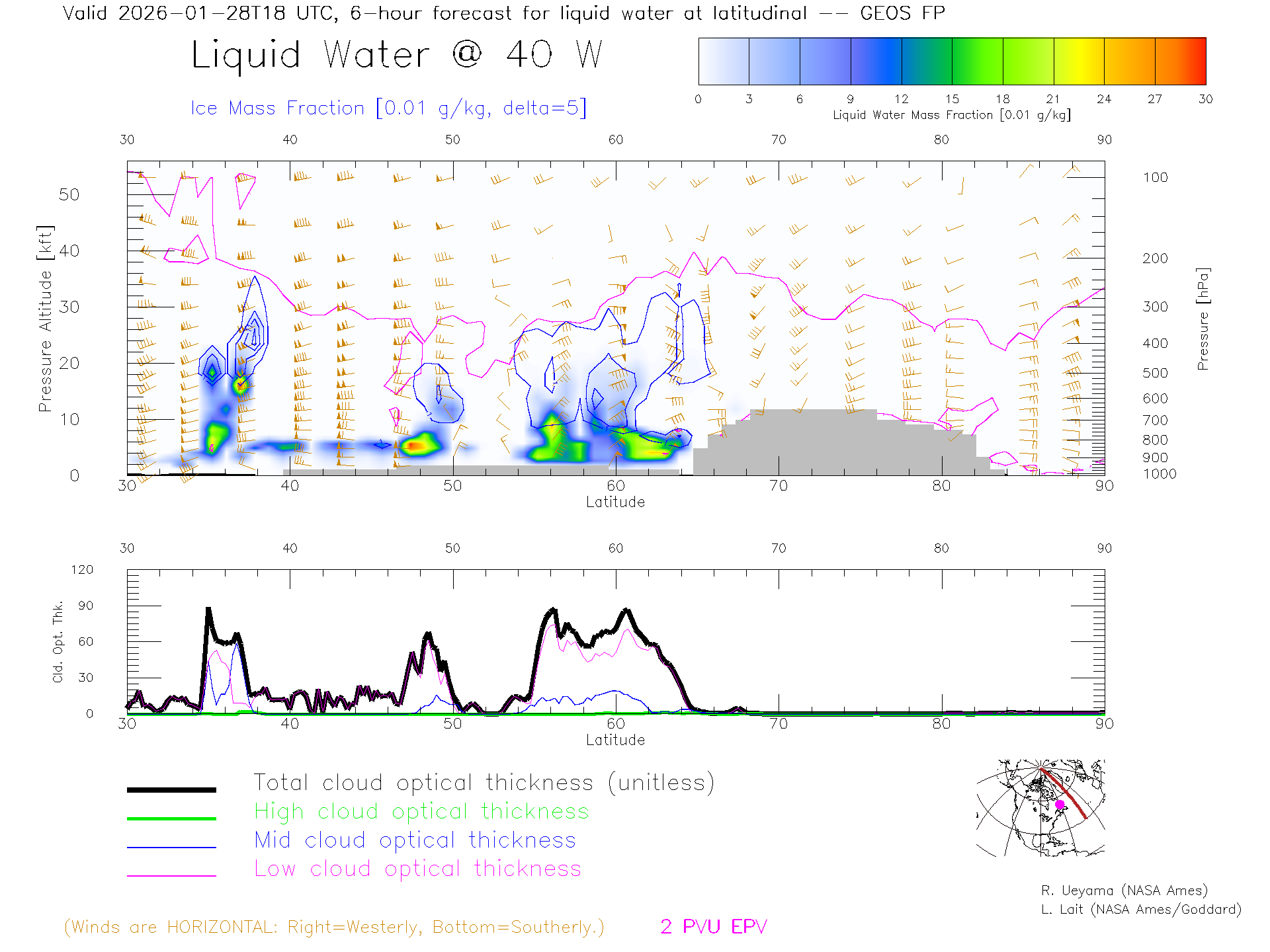 GEOS Forecast Cloud Water Content X-Section (40 W)