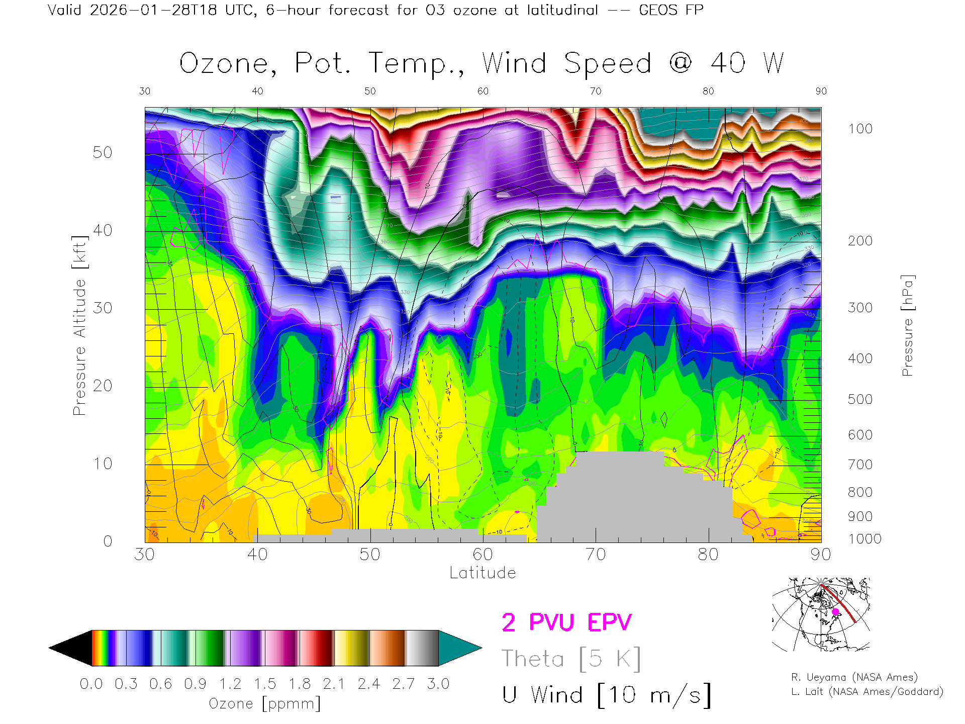 GEOS Forecast Ozone X-Section (40 W)