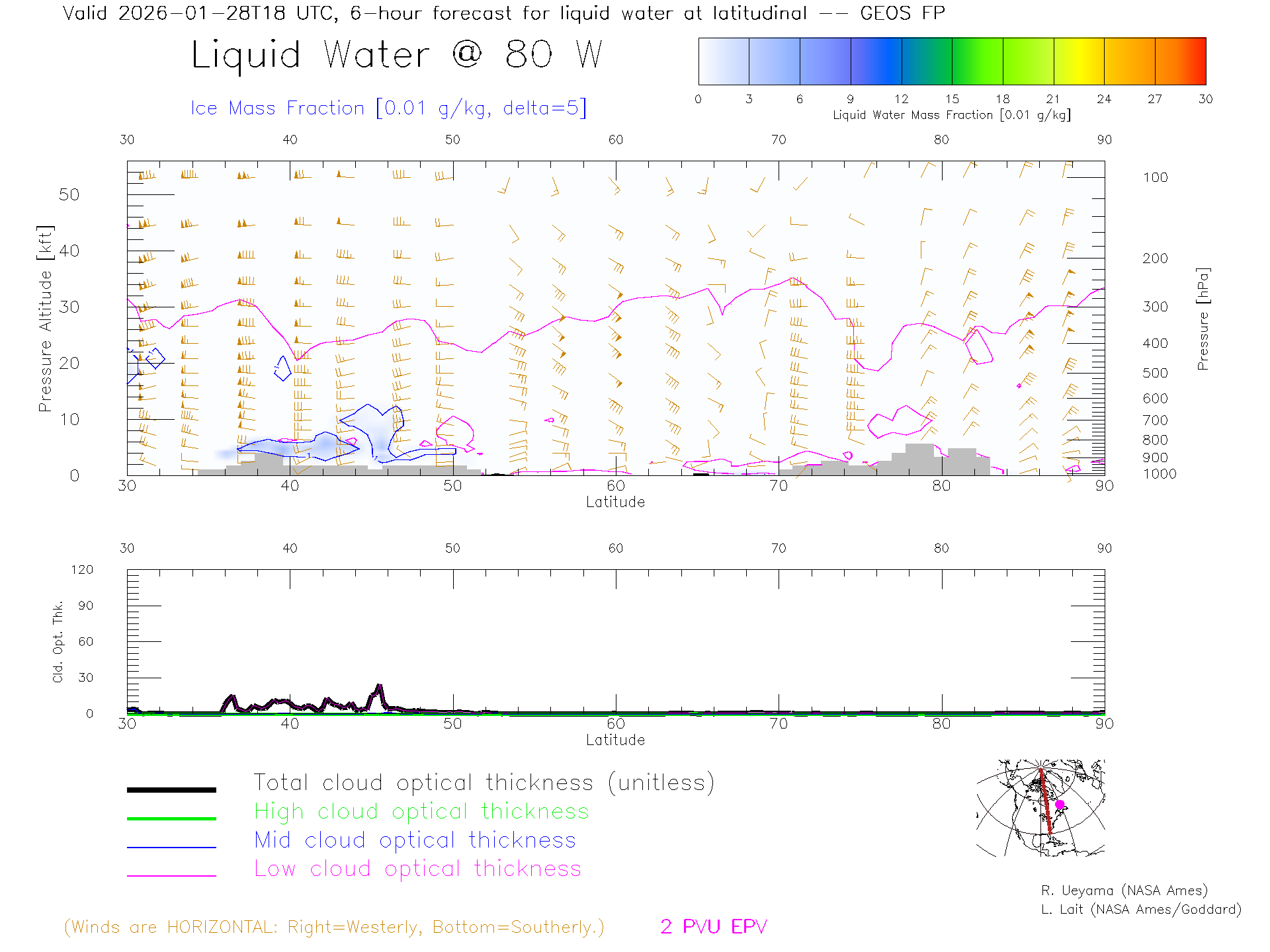 GEOS Forecast Cloud Water Content X-Section (80 W)