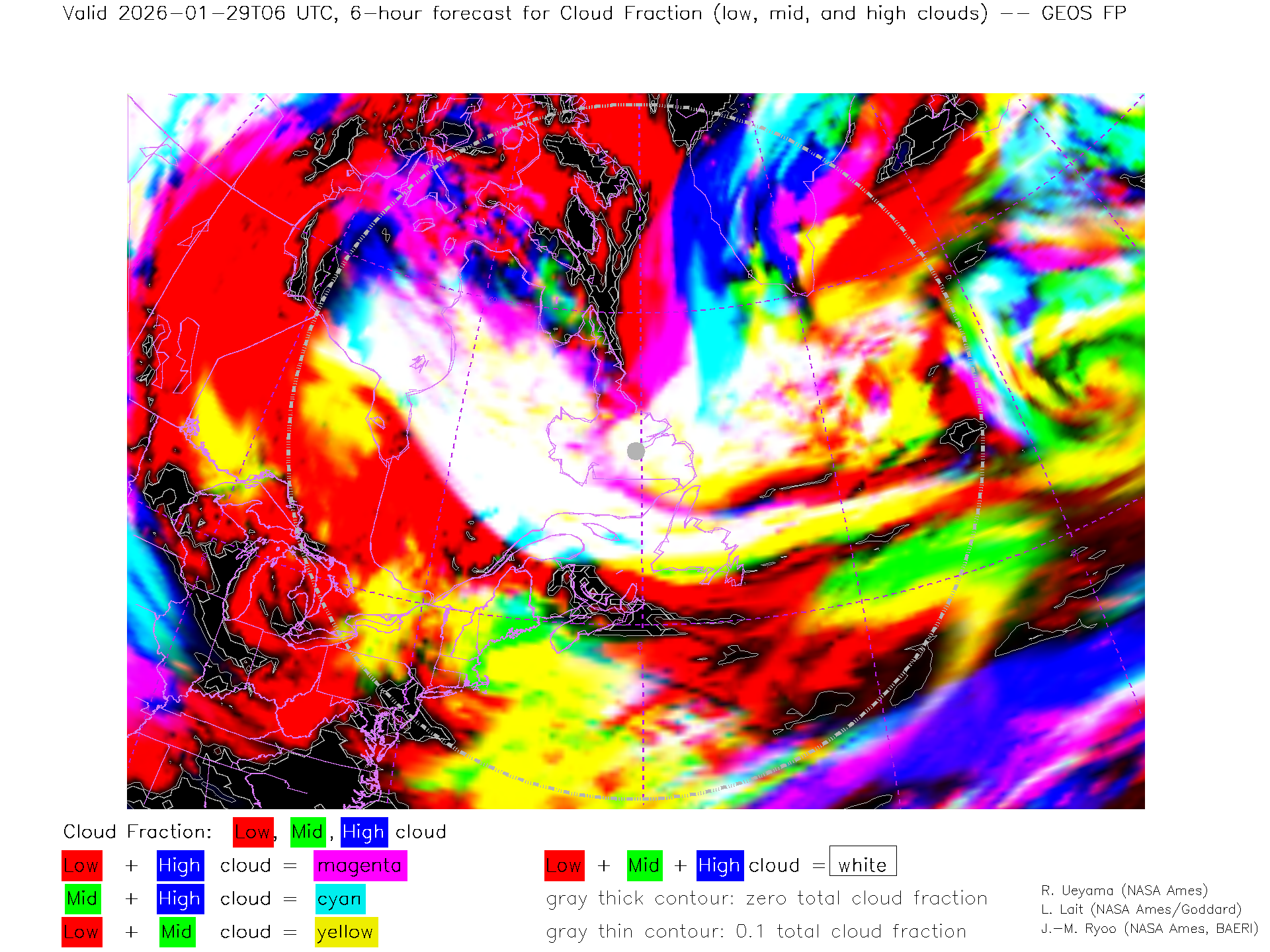GEOS Forecast Low-, Mid- and High-level Cloud Fraction