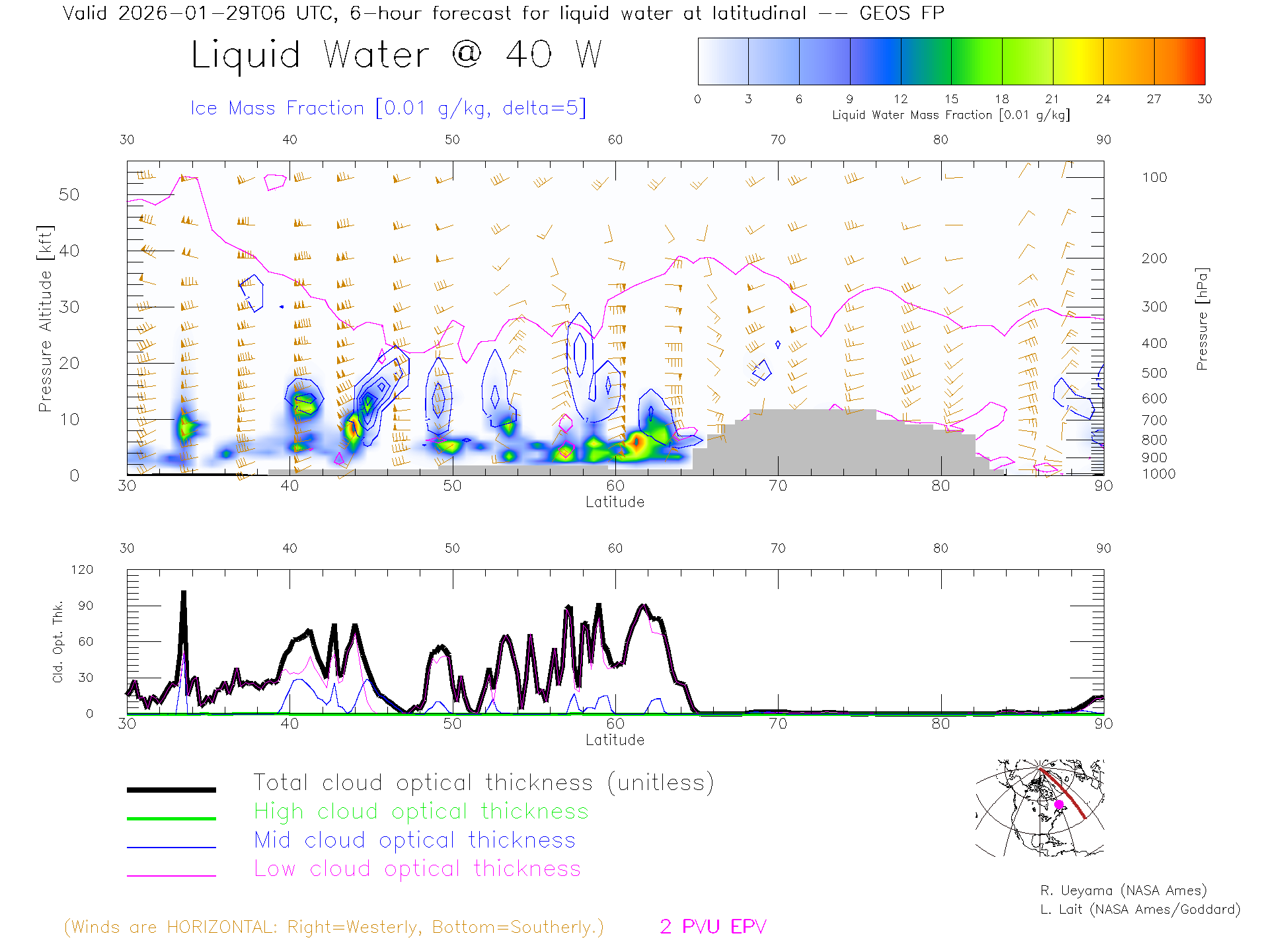 GEOS Forecast Cloud Water Content X-Section (40 W)
