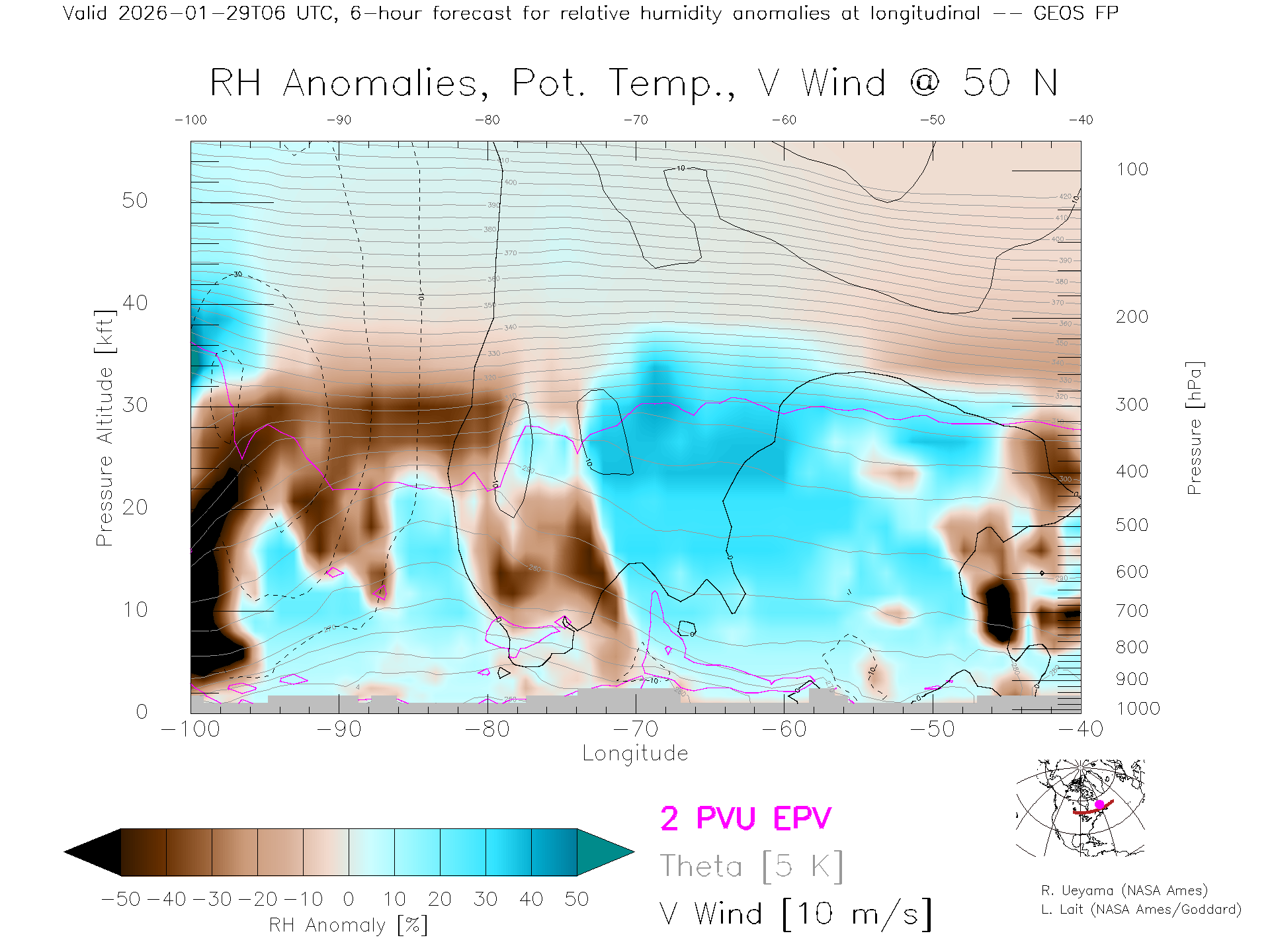 GEOS Forecast Rel. Hum. X-Section (50 N)