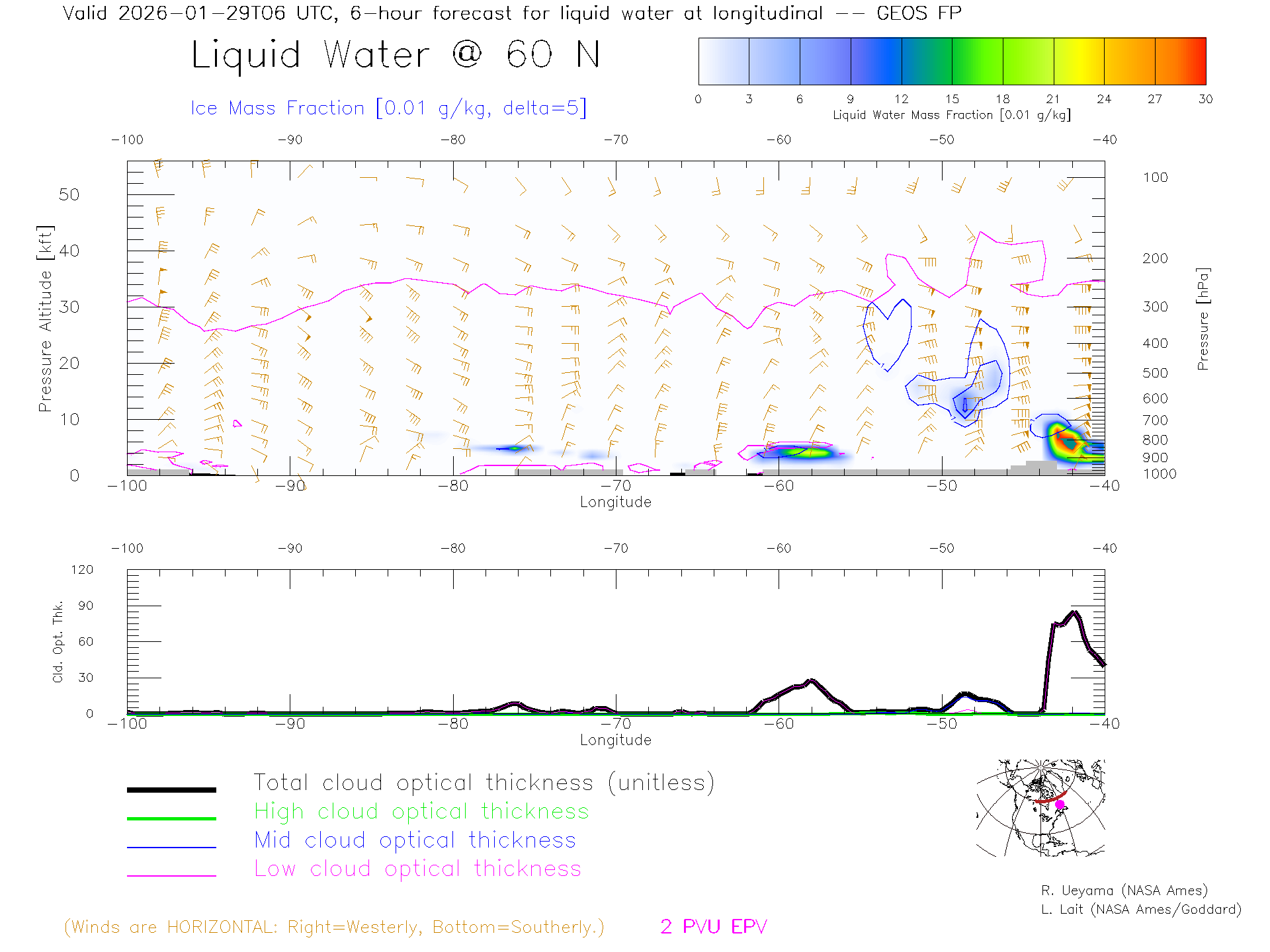 GEOS Forecast Cloud Water Content X-Section (60 N)