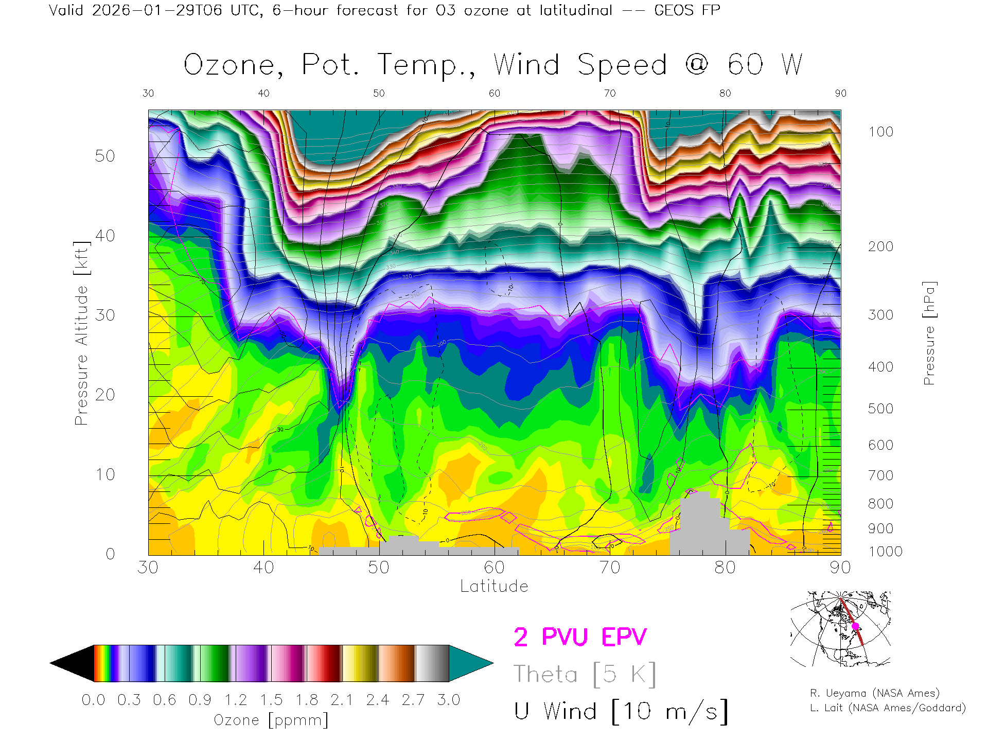 GEOS Forecast Ozone X-Section (60 W)