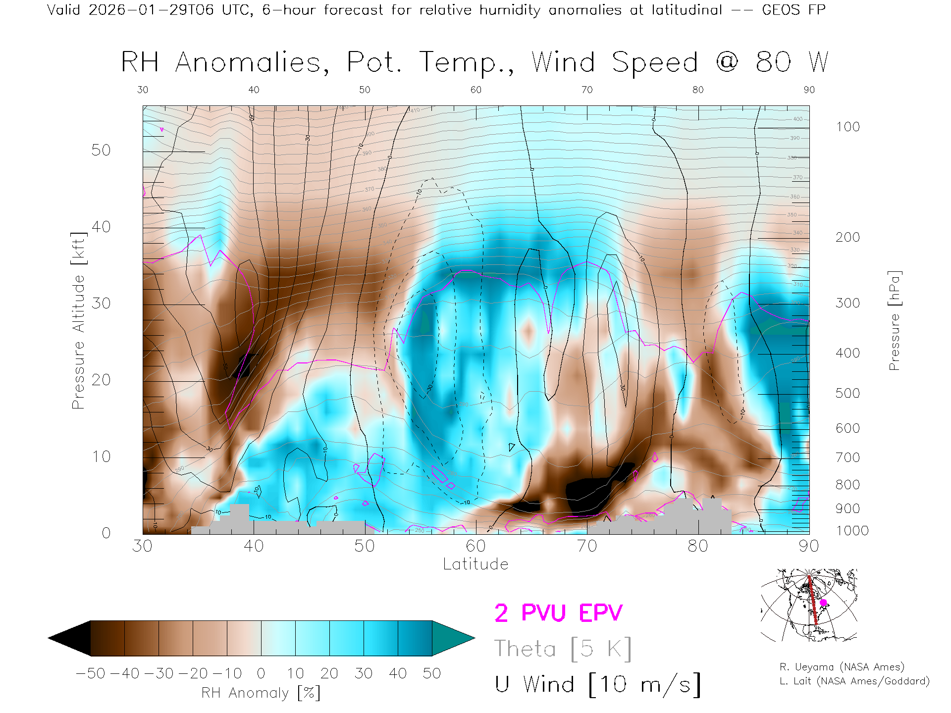 GEOS Forecast Rel. Hum. X-Section (80 W)