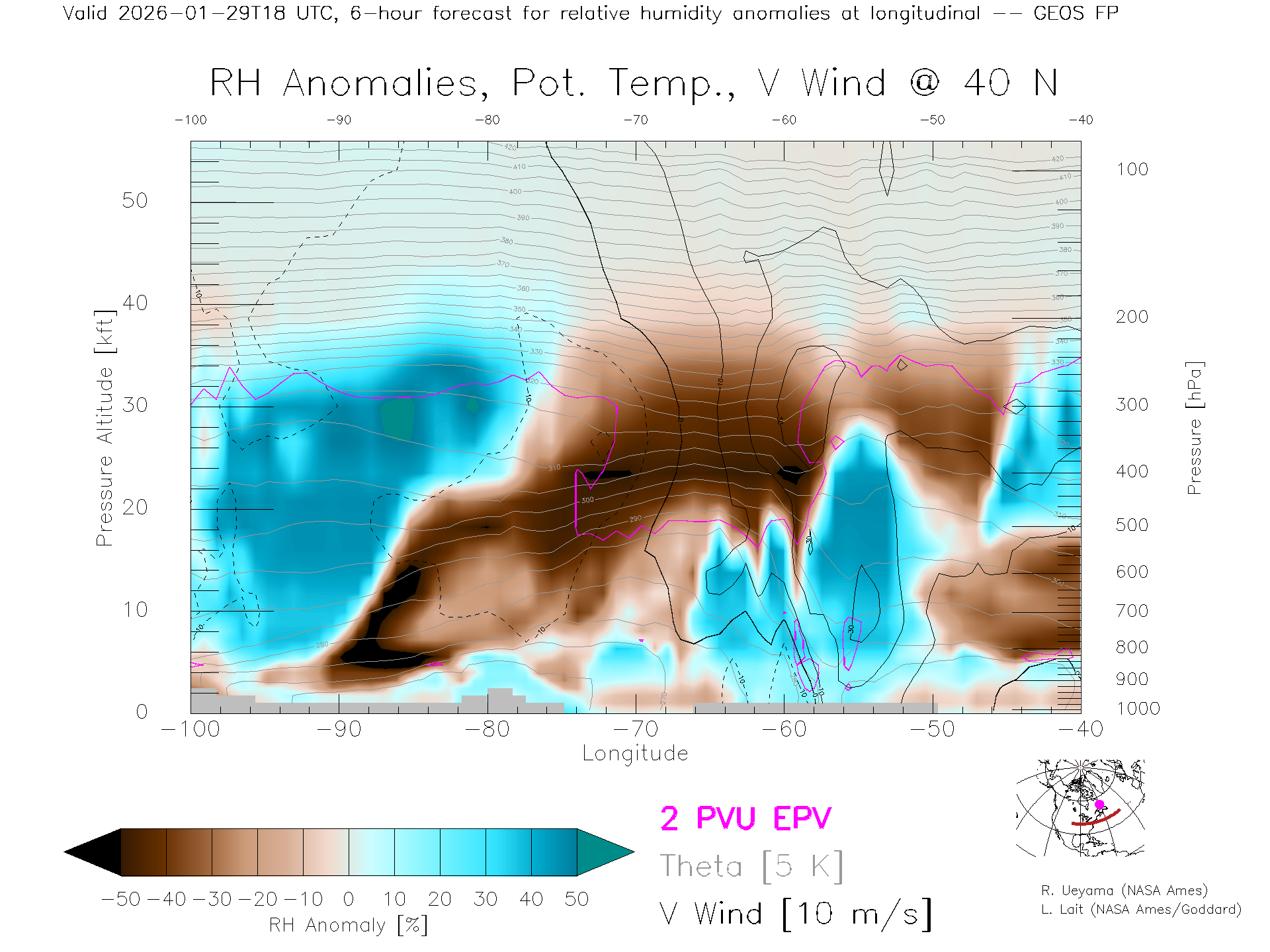 GEOS Forecast Rel. Hum. X-Section (40 N)