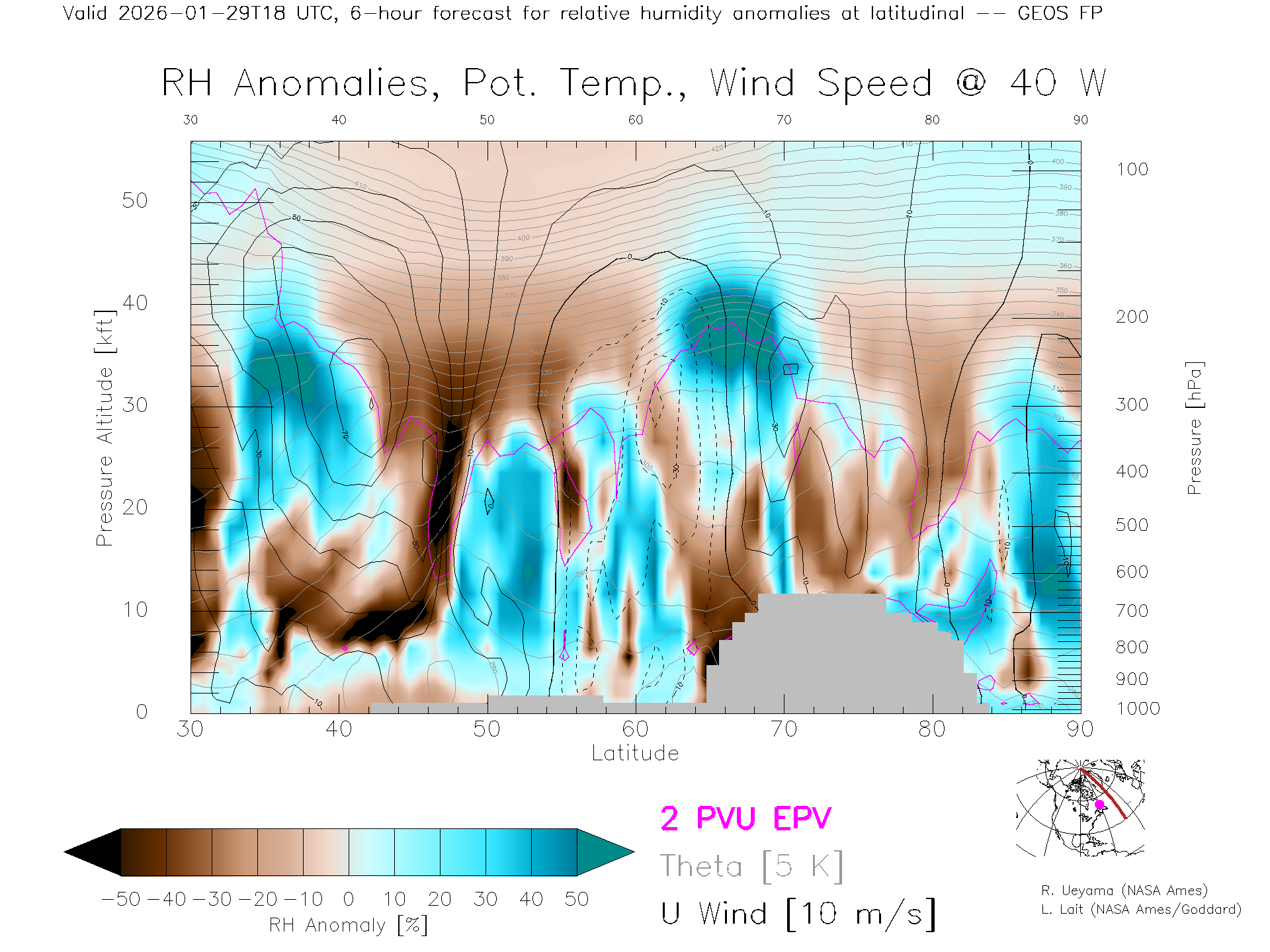 GEOS Forecast Rel. Hum. X-Section (40 W)