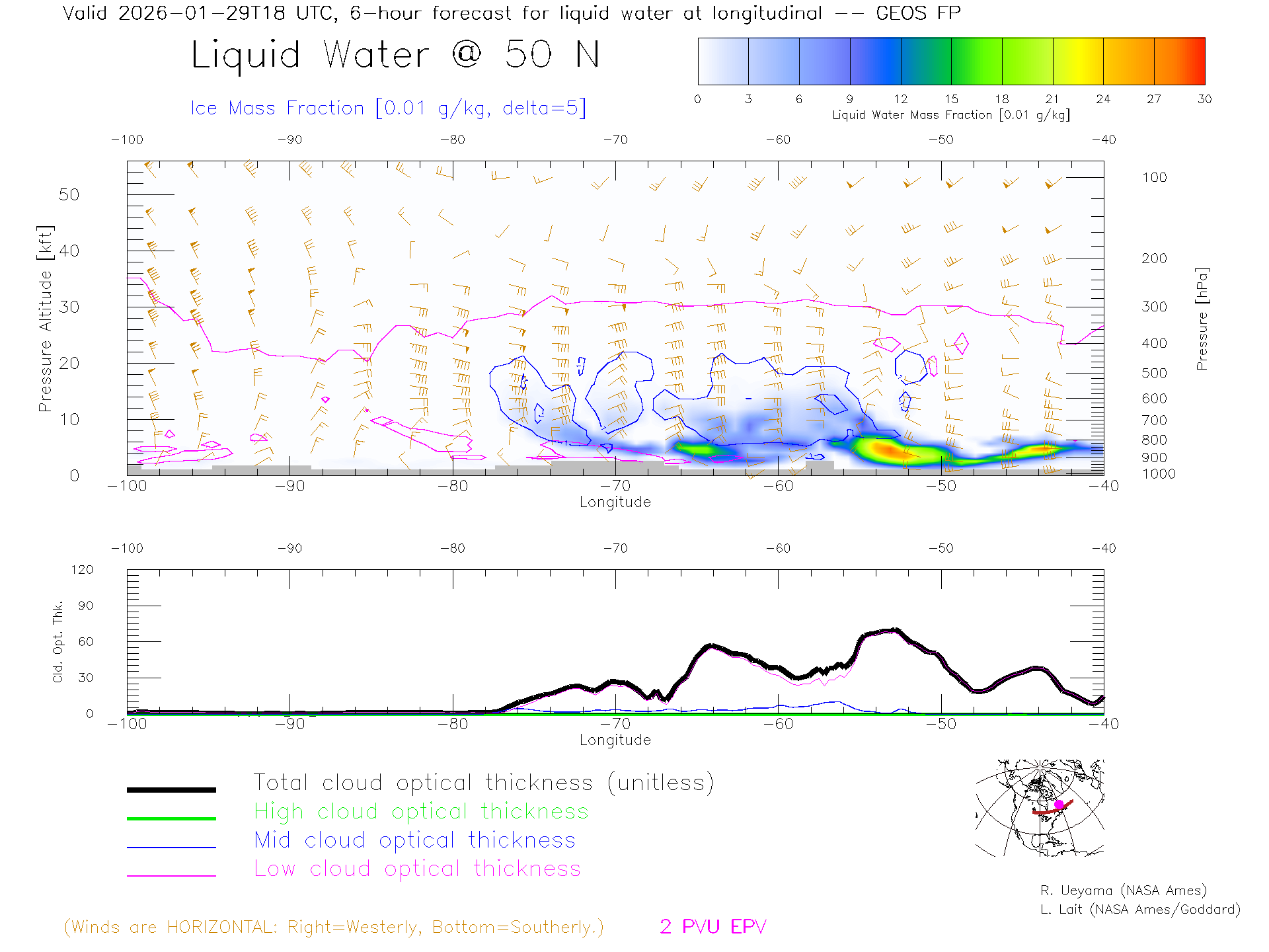 GEOS Forecast Cloud Water Content X-Section (50 N)