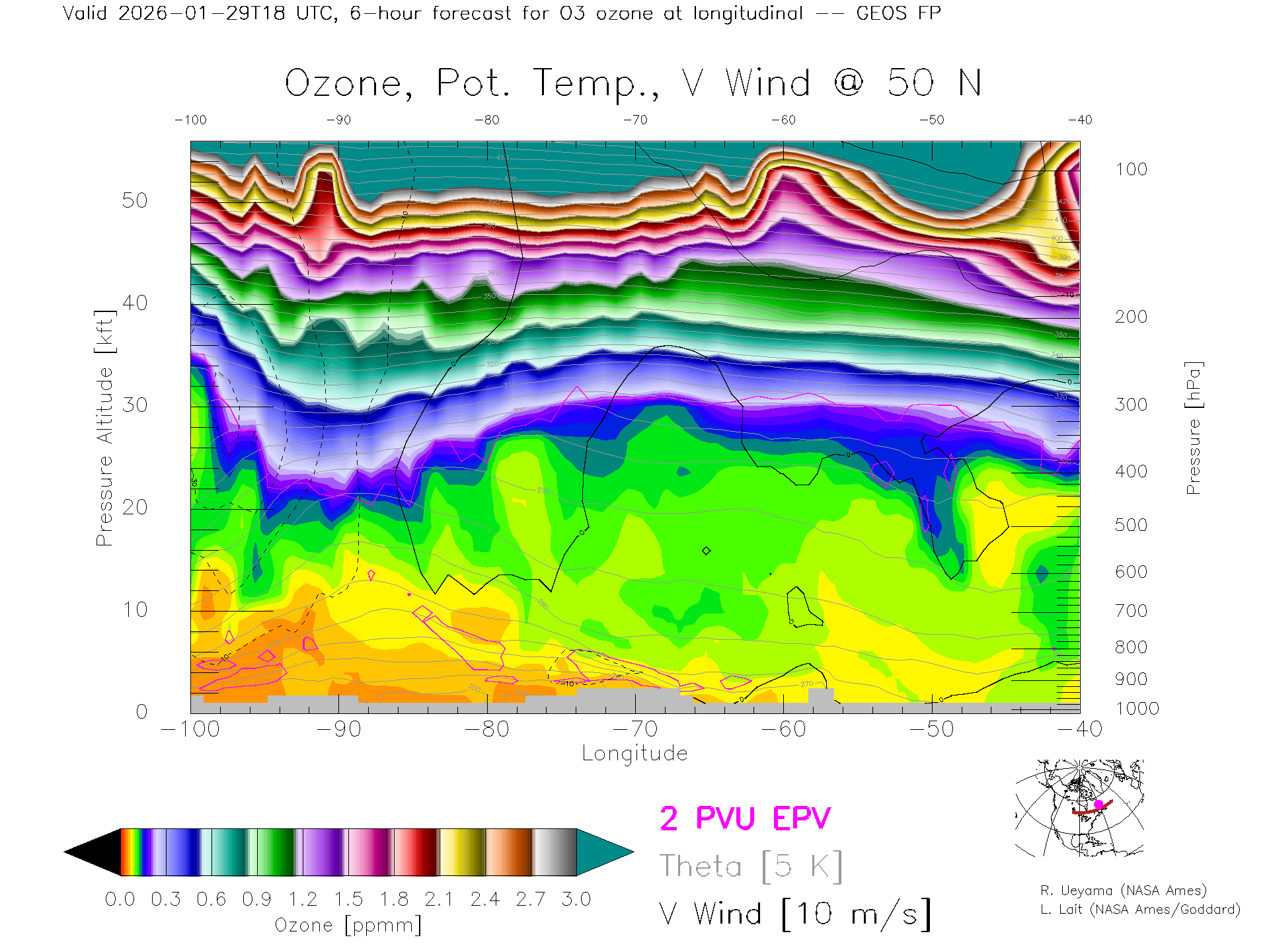 GEOS Forecast Ozone X-Section (50 N)