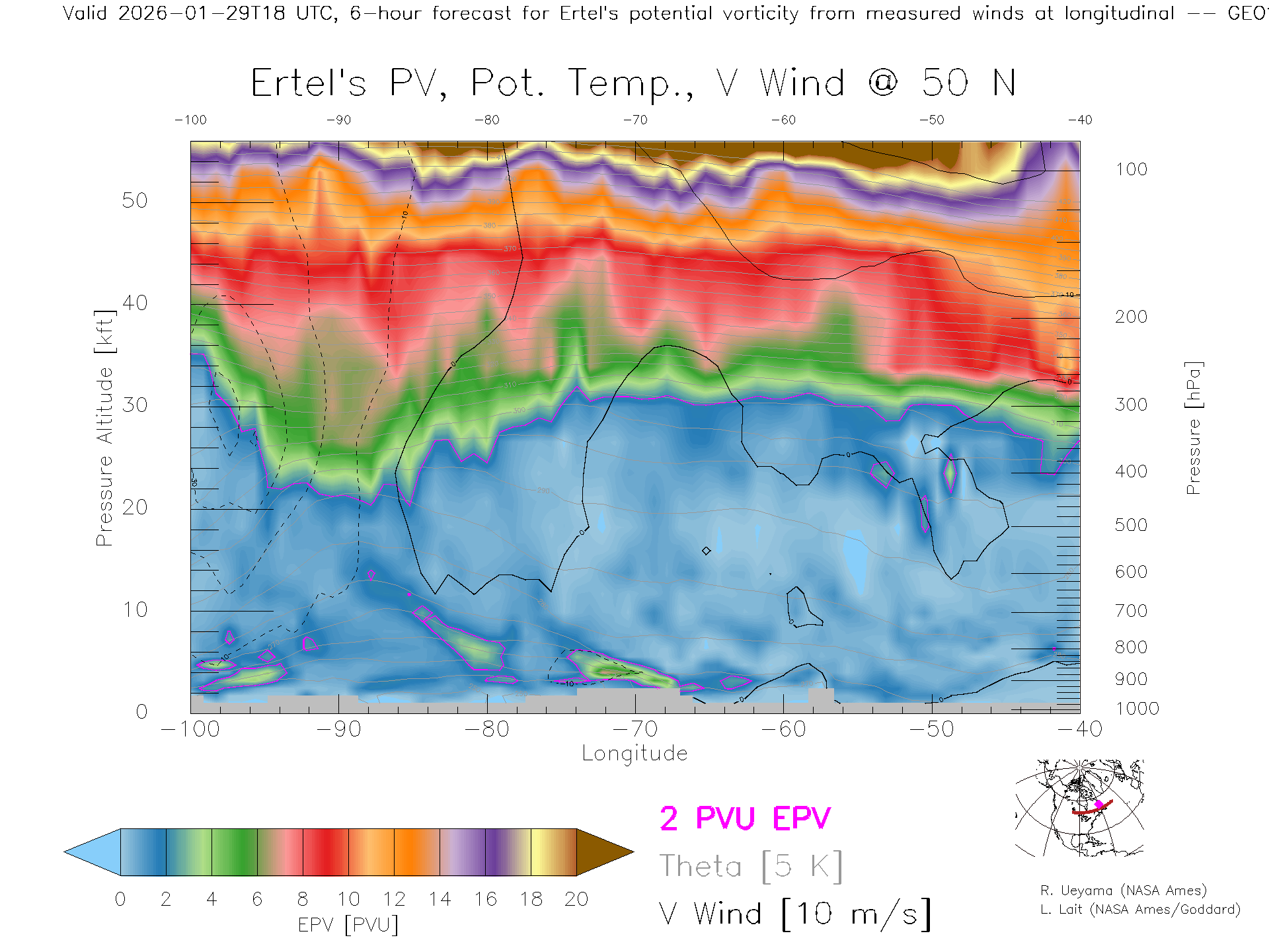 GEOS Forecast PV X-Section (50 N)