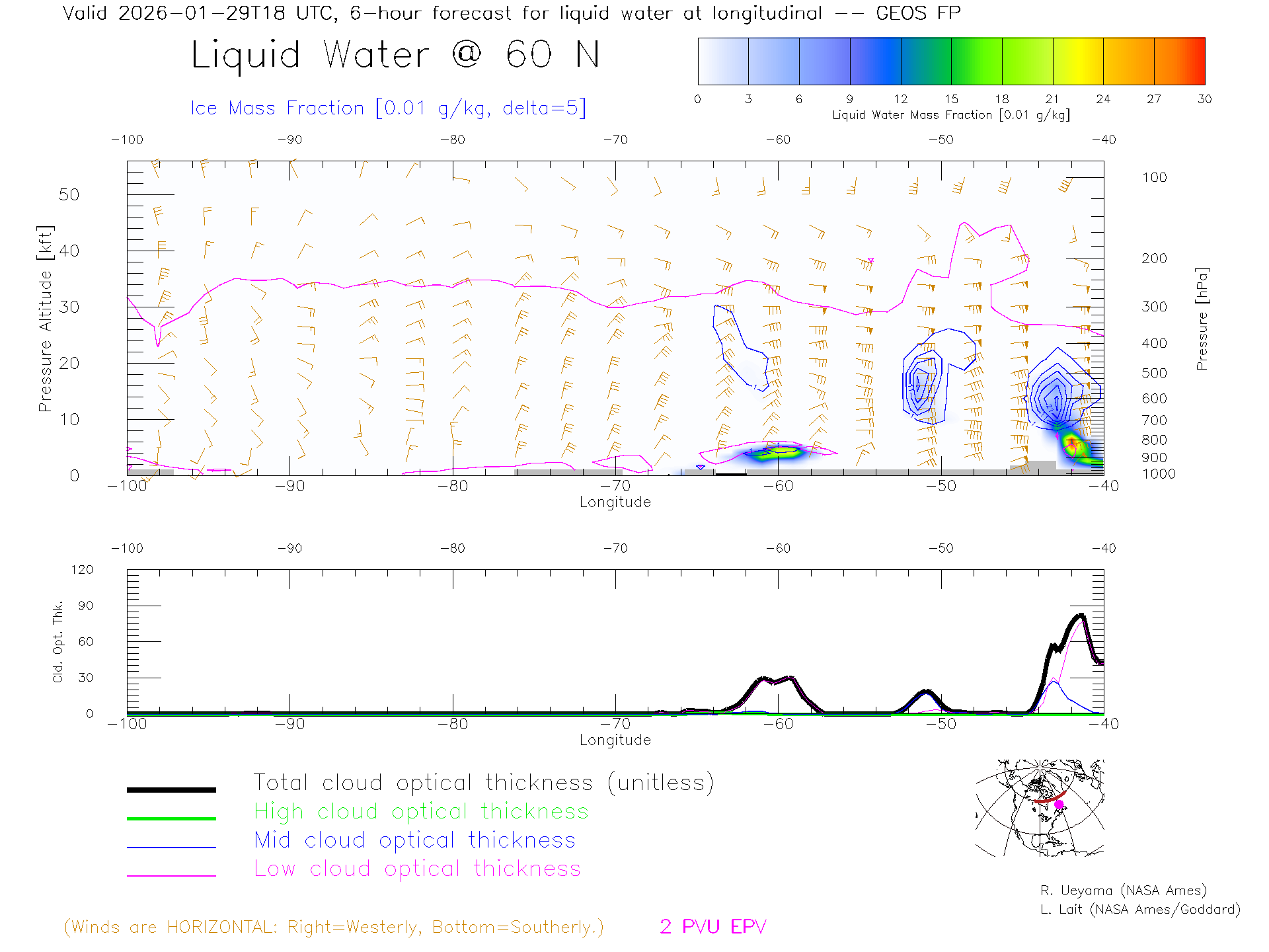 GEOS Forecast Cloud Water Content X-Section (60 N)