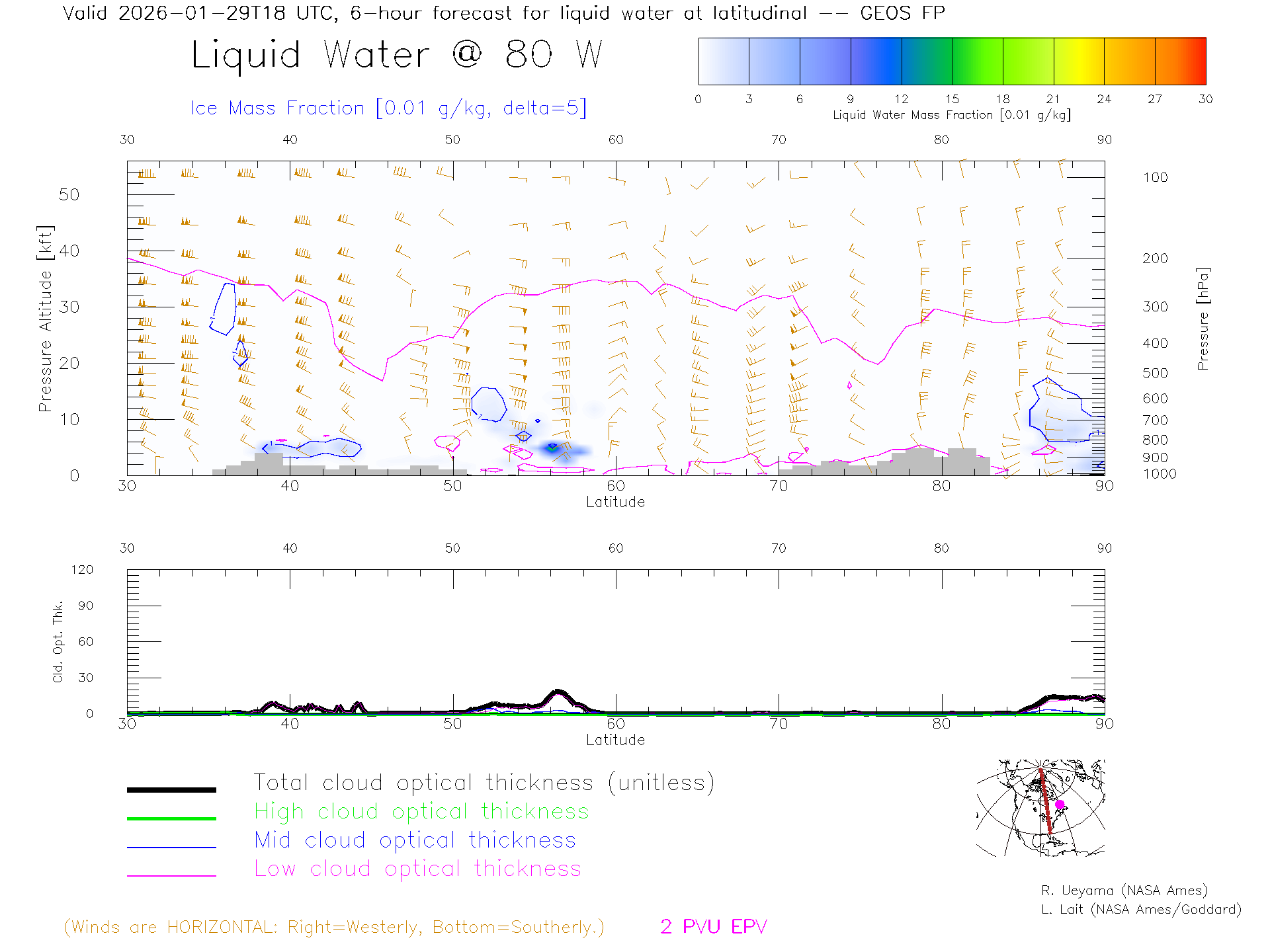 GEOS Forecast Cloud Water Content X-Section (80 W)