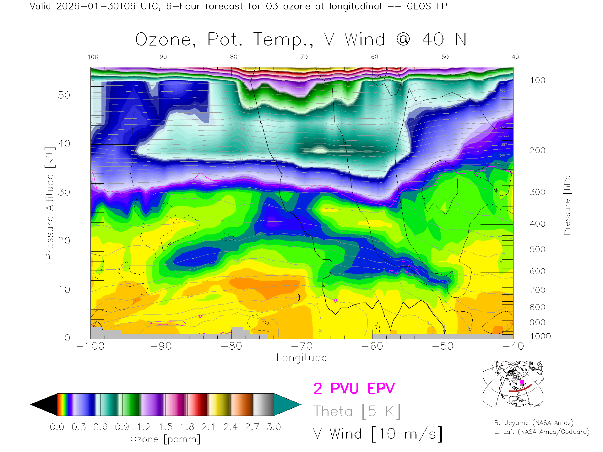 GEOS Forecast Ozone X-Section (40 N)