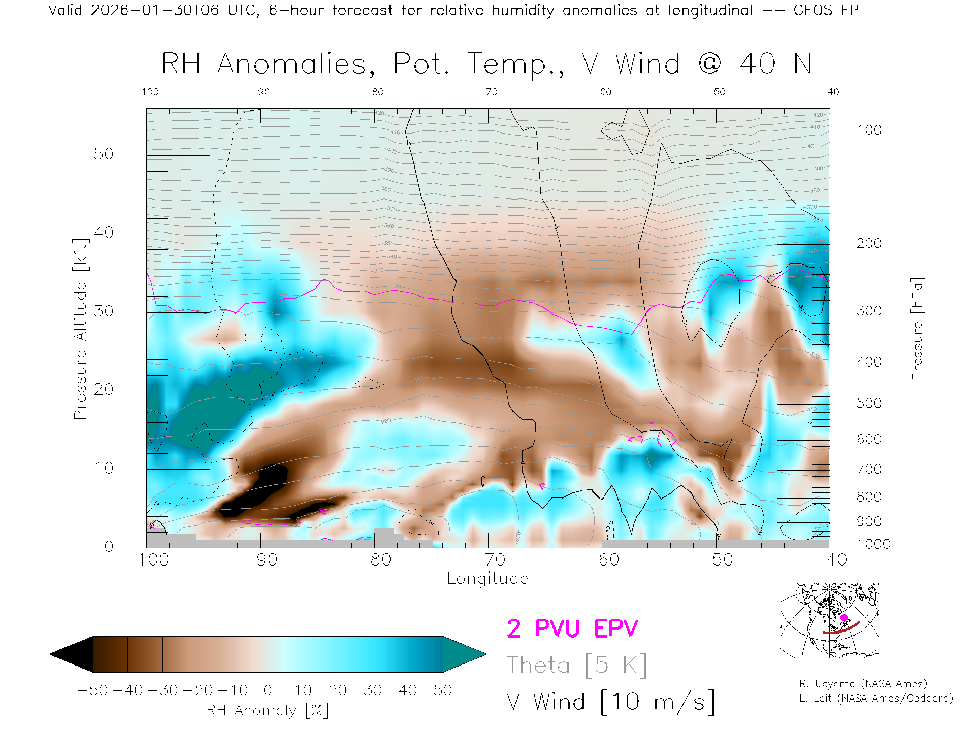 GEOS Forecast Rel. Hum. X-Section (40 N)