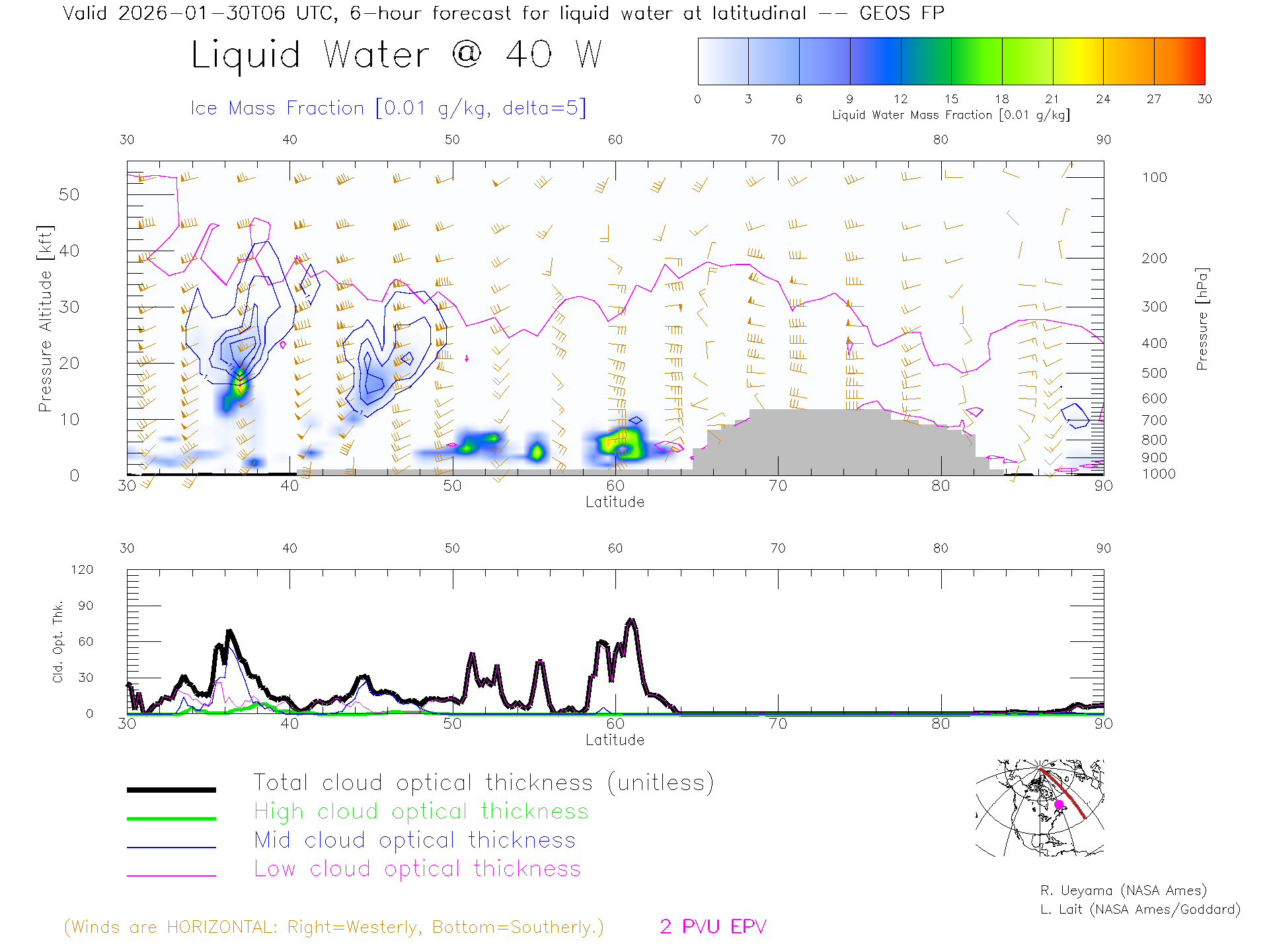 GEOS Forecast Cloud Water Content X-Section (40 W)