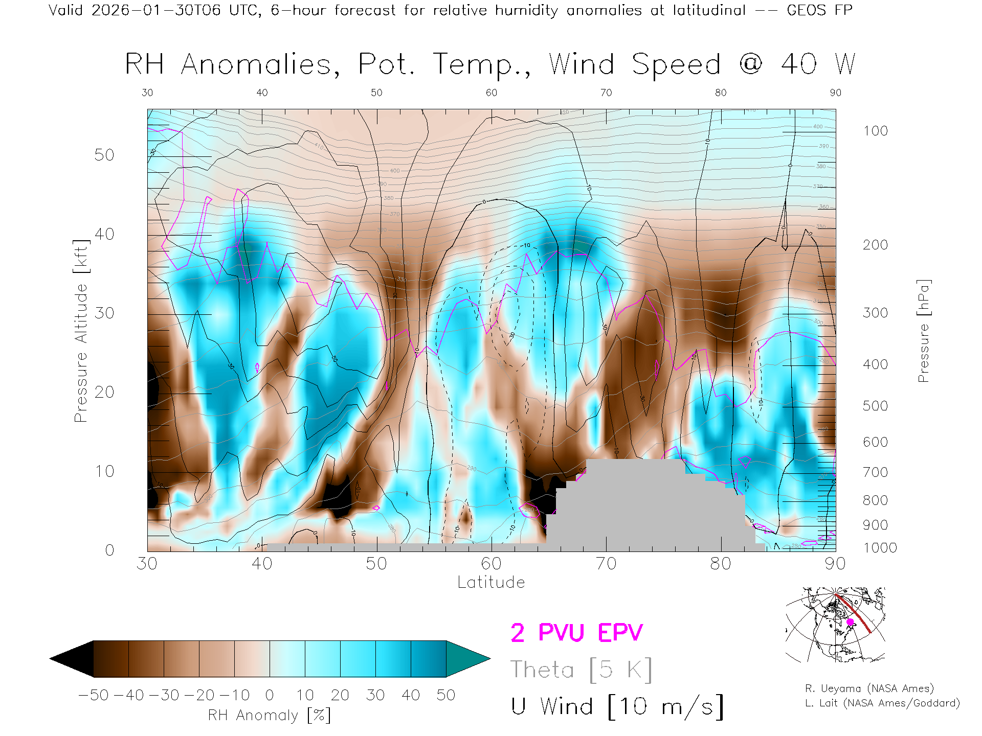 GEOS Forecast Rel. Hum. X-Section (40 W)