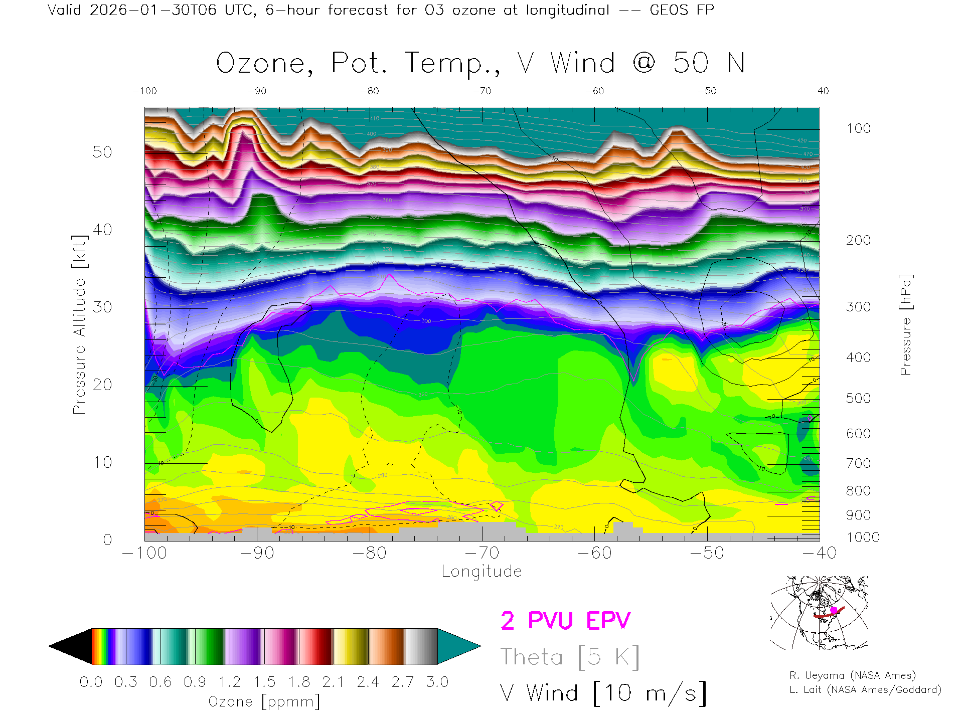 GEOS Forecast Ozone X-Section (50 N)