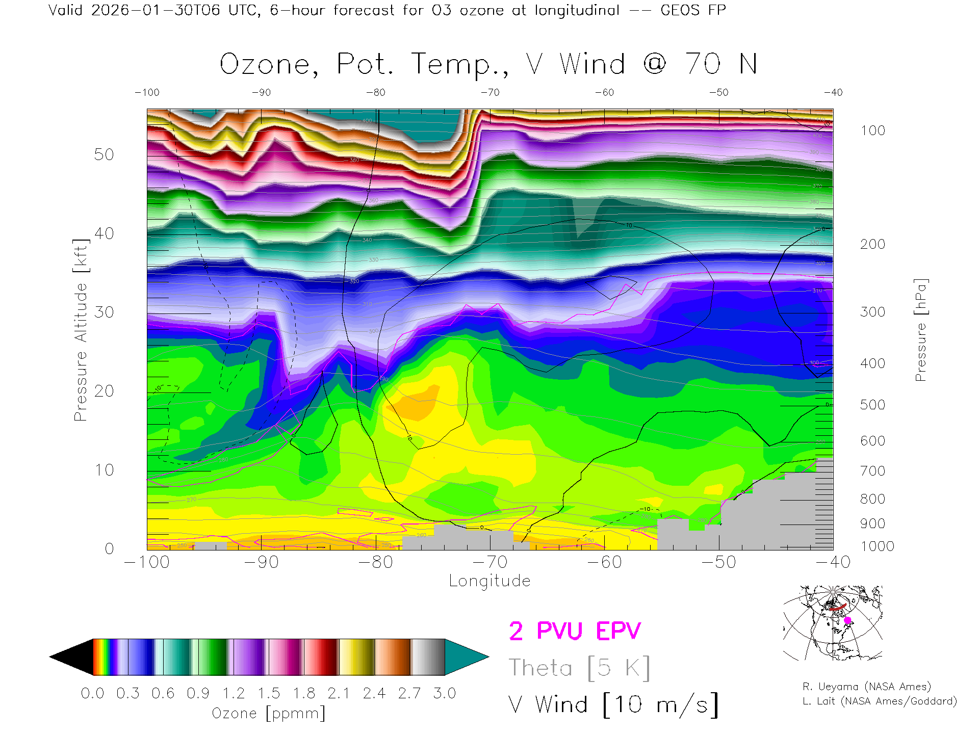GEOS Forecast Ozone X-Section (70 N)