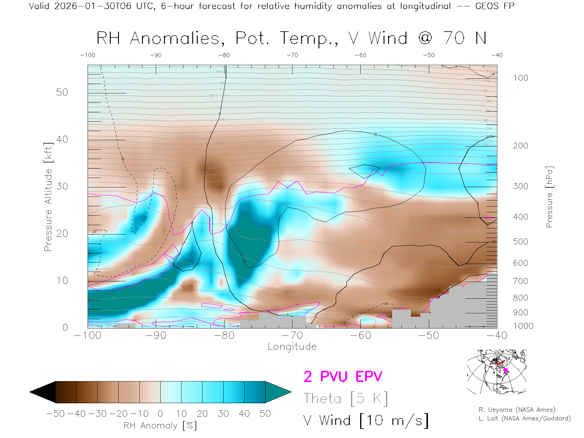 GEOS Forecast Rel. Hum. X-Section (70 N)
