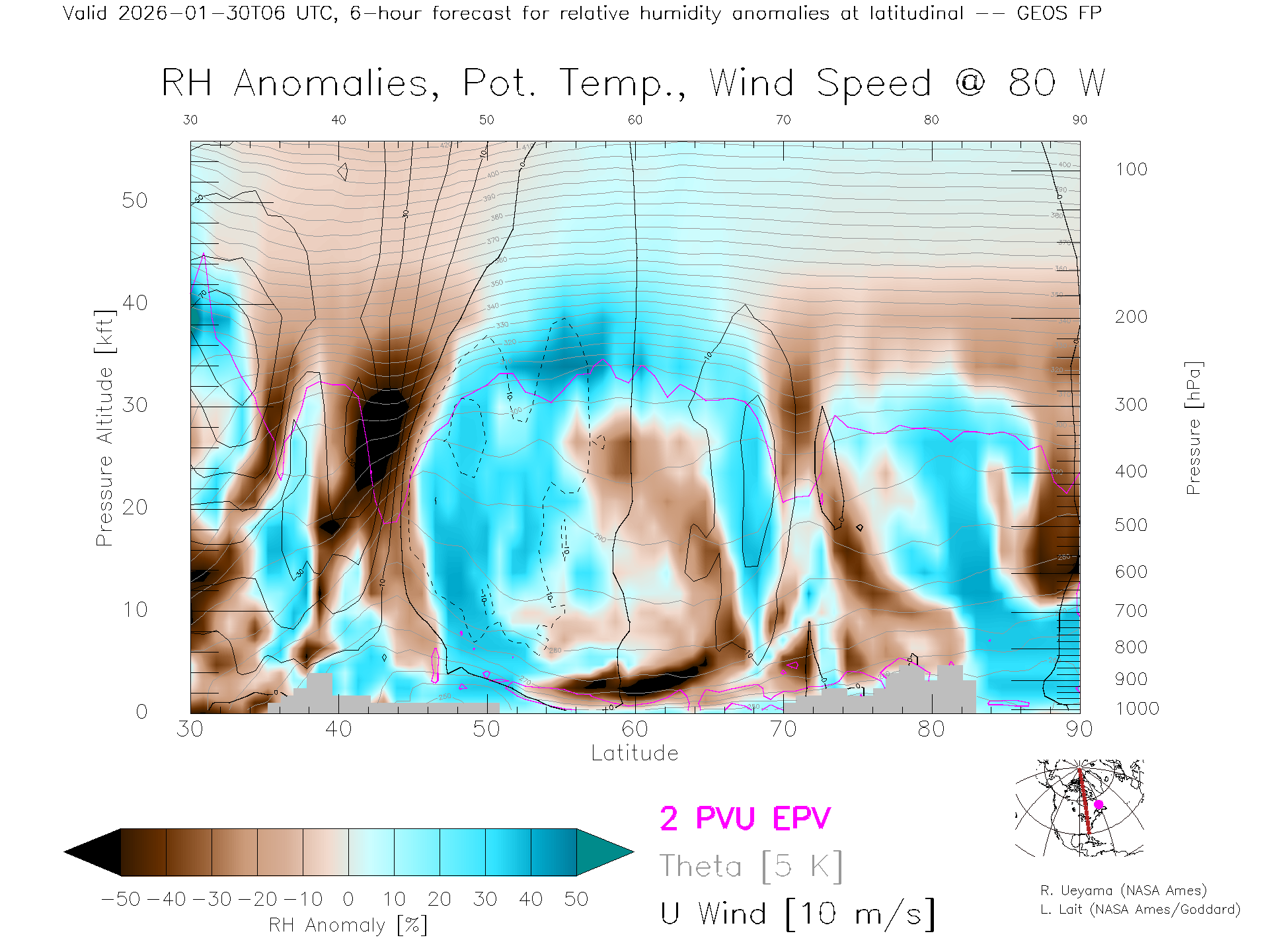GEOS Forecast Rel. Hum. X-Section (80 W)