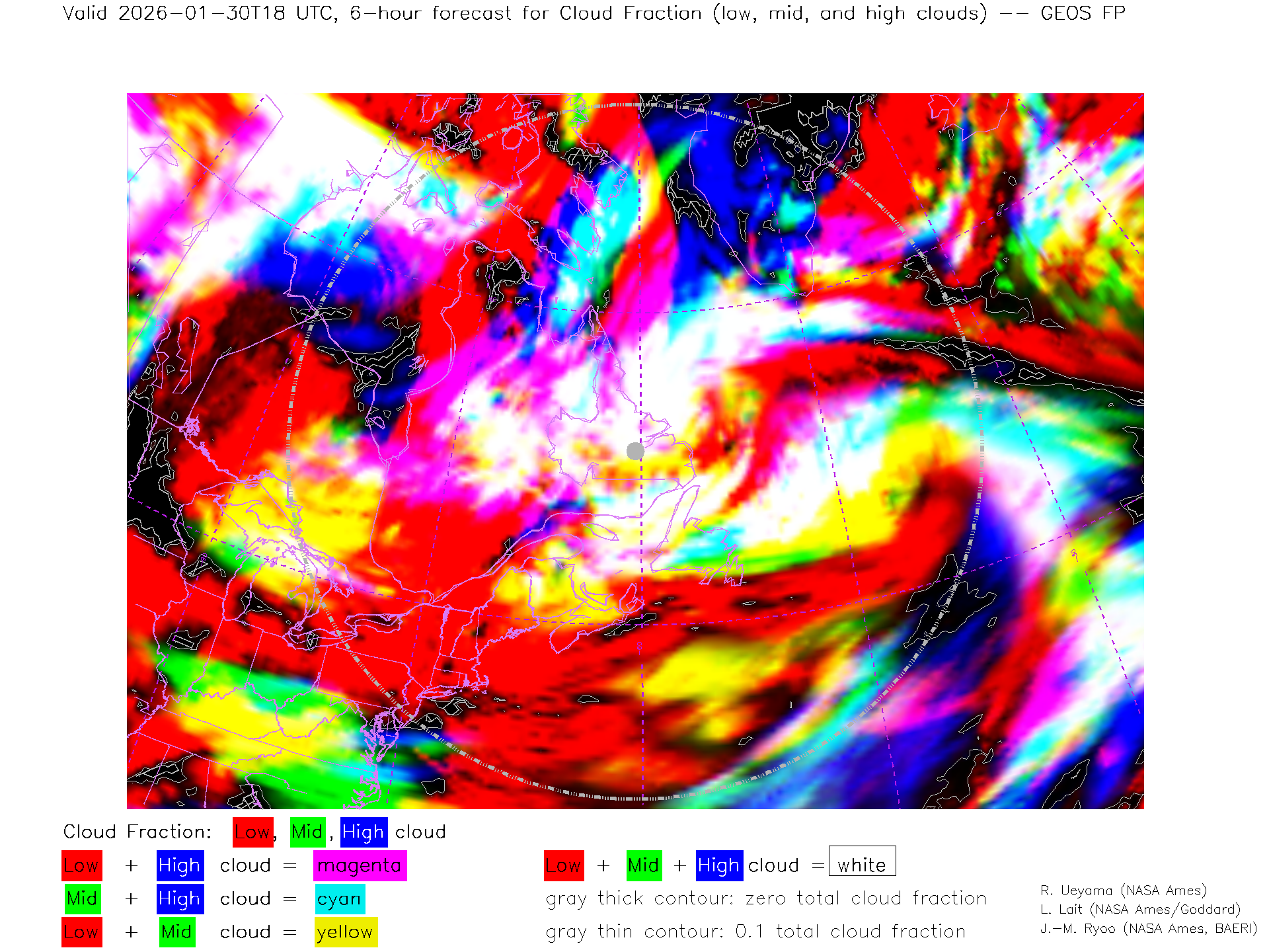 GEOS Forecast Low-, Mid- and High-level Cloud Fraction
