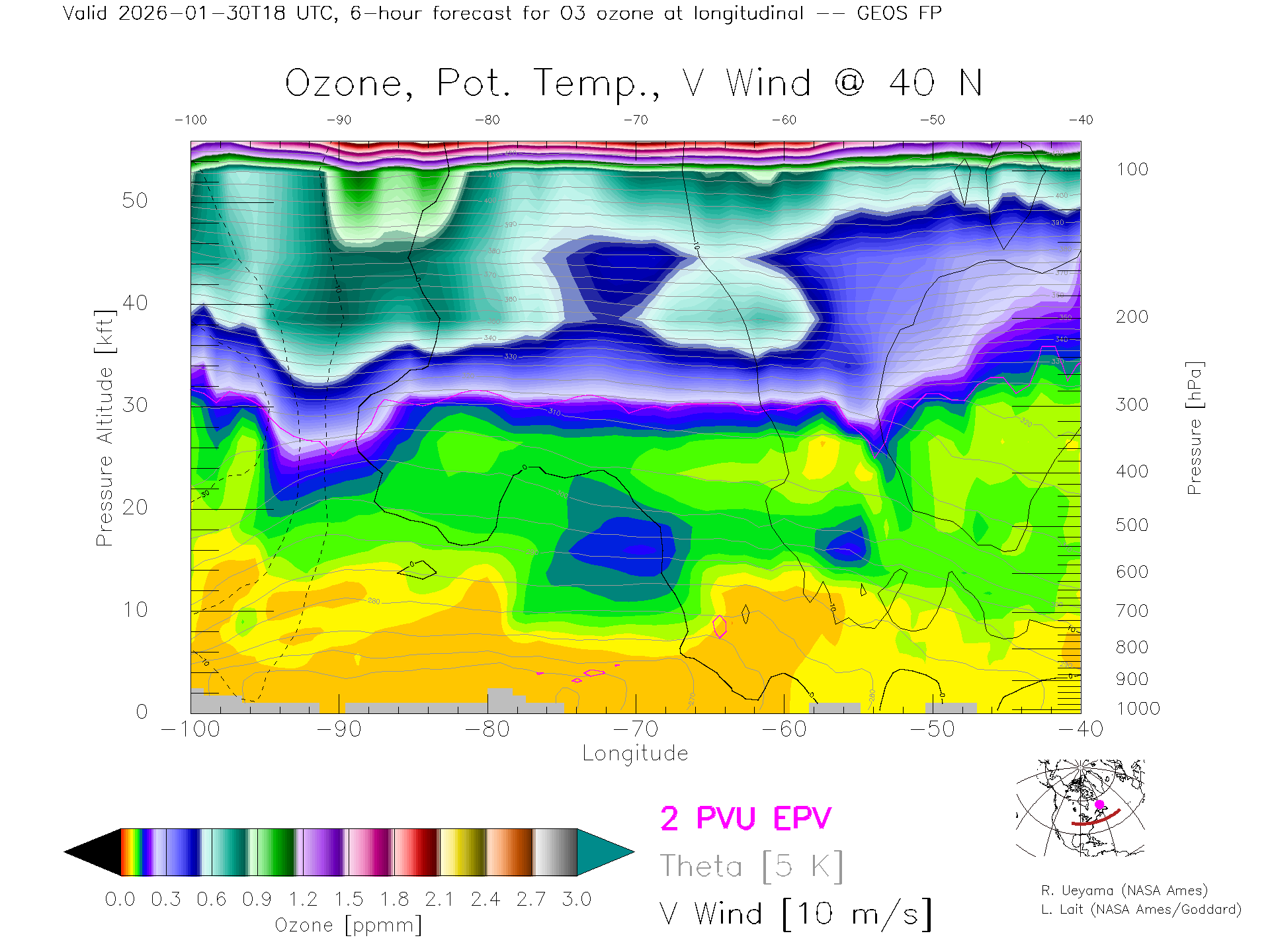 GEOS Forecast Ozone X-Section (40 N)