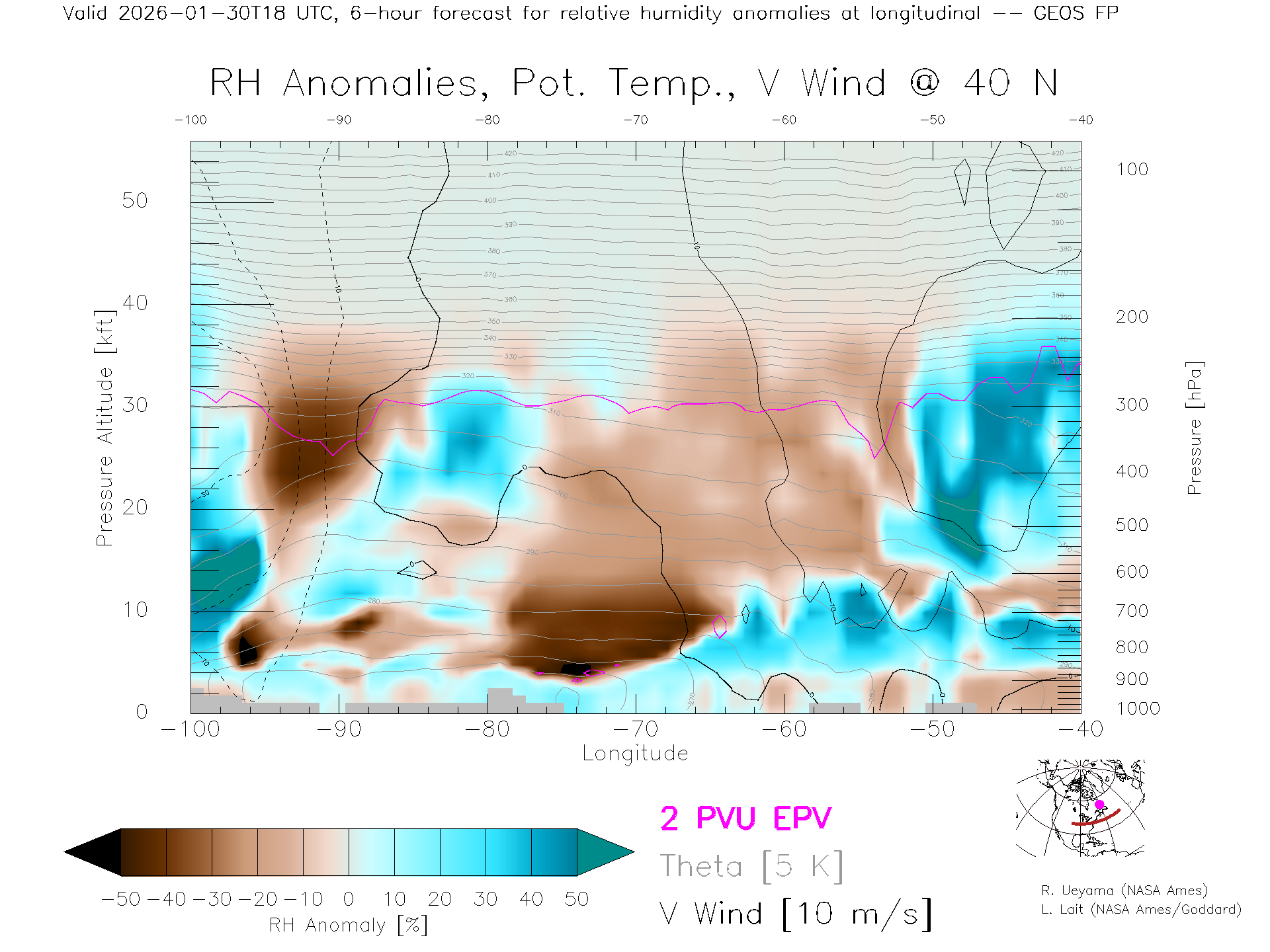 GEOS Forecast Rel. Hum. X-Section (40 N)