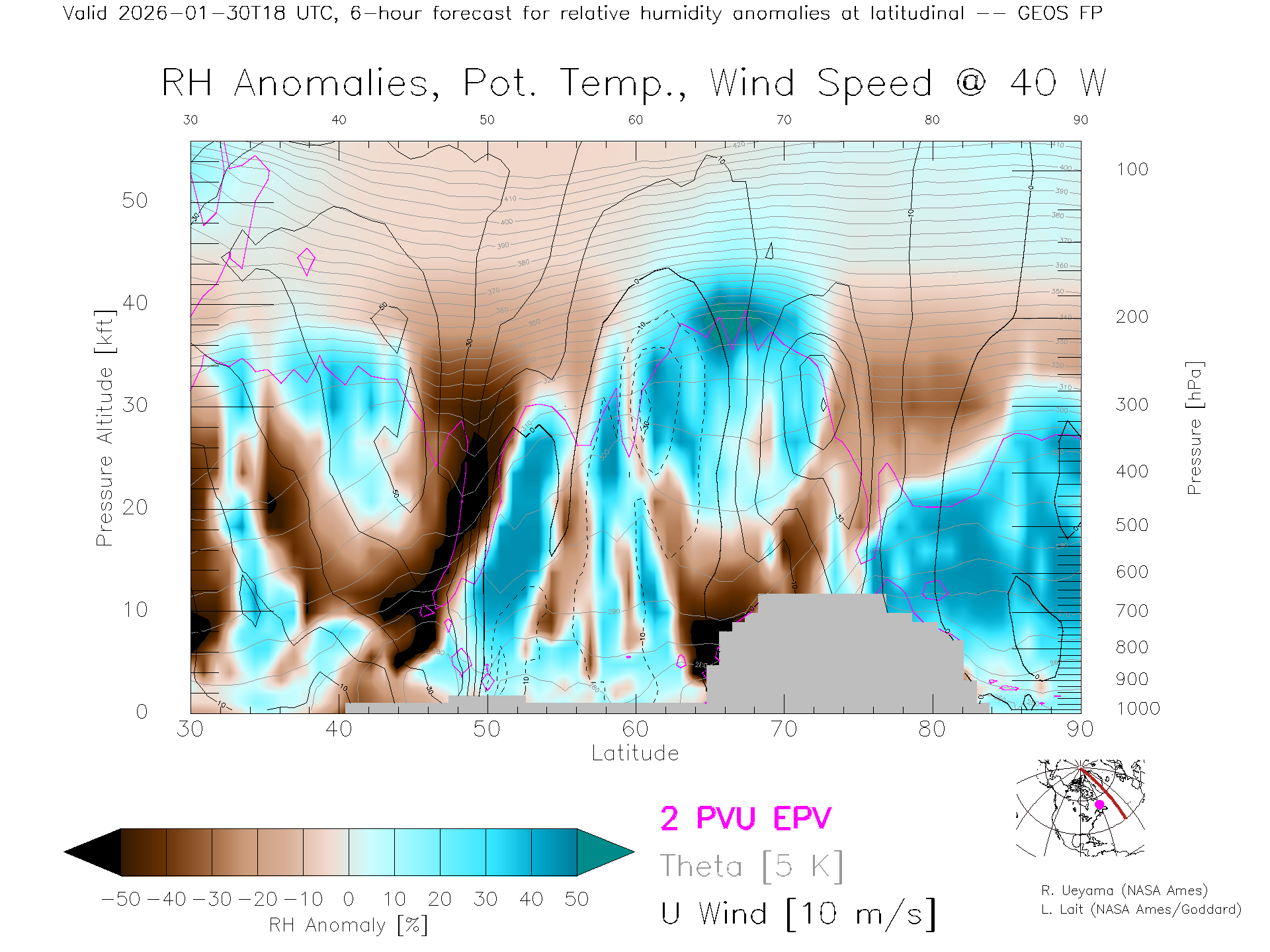 GEOS Forecast Rel. Hum. X-Section (40 W)