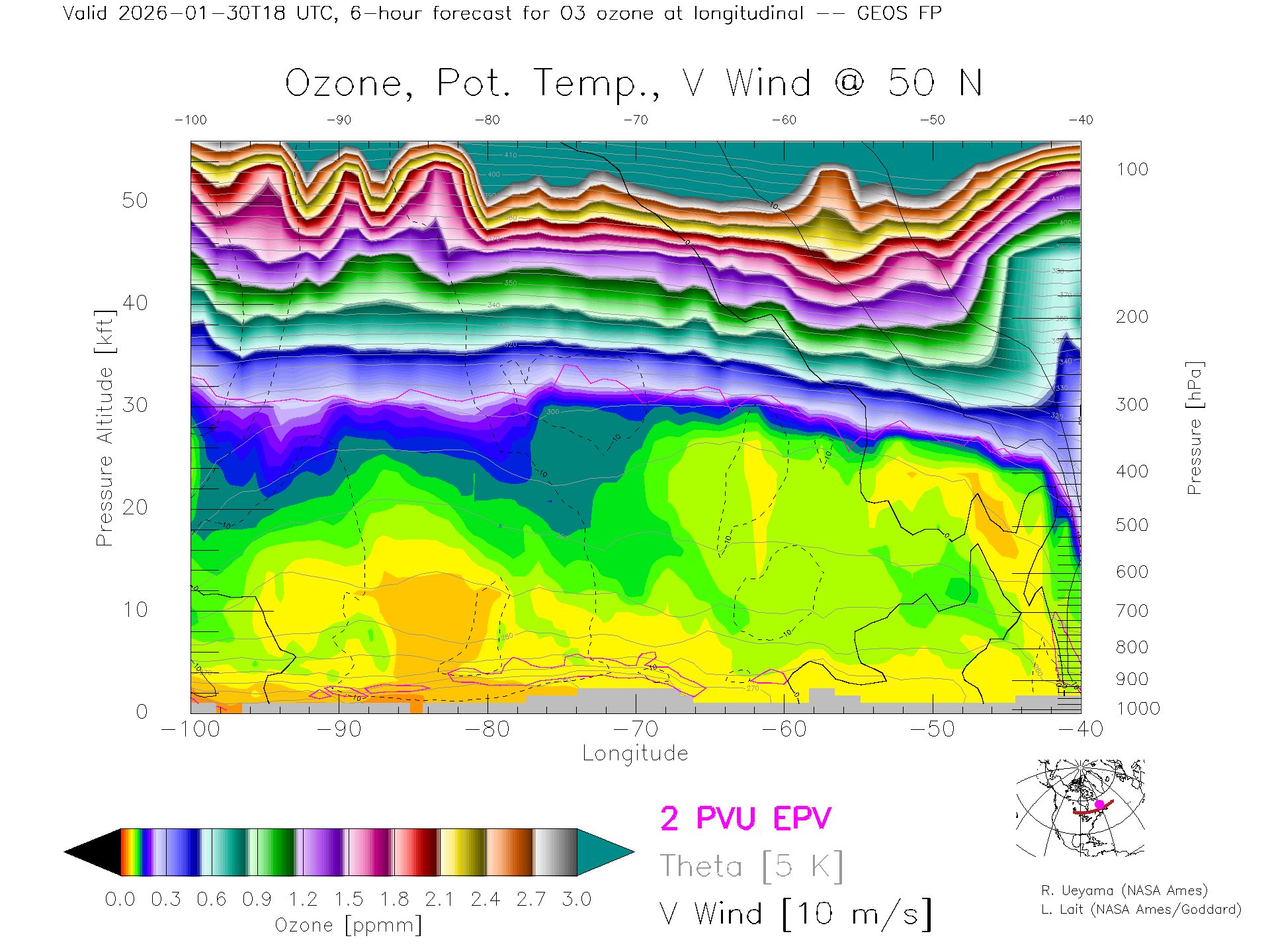 GEOS Forecast Ozone X-Section (50 N)