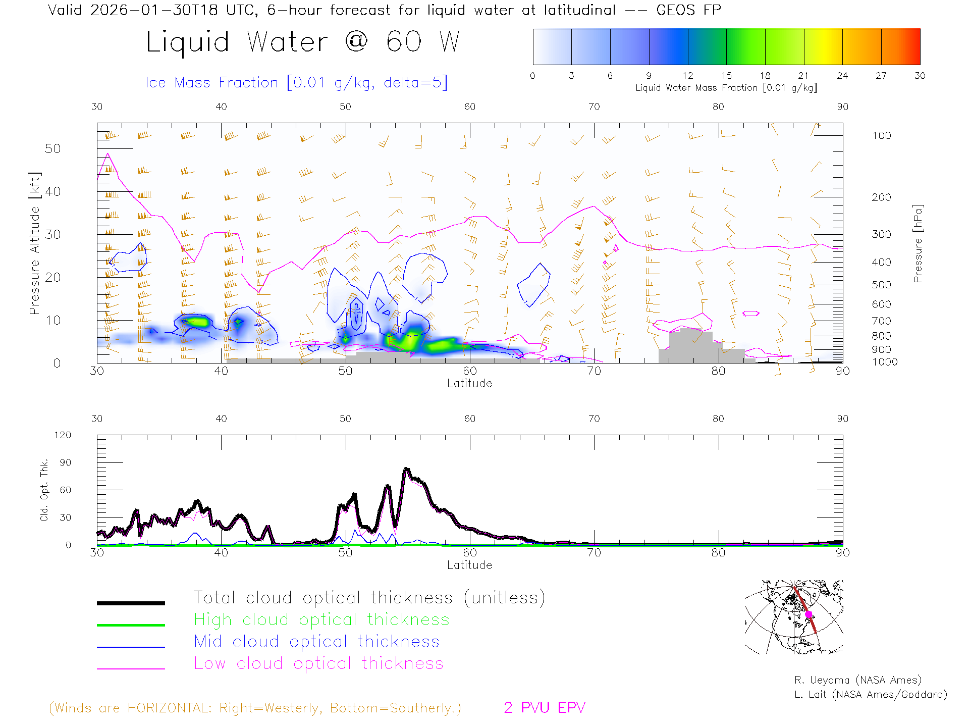 GEOS Forecast Cloud Water Content X-Section (60 W)