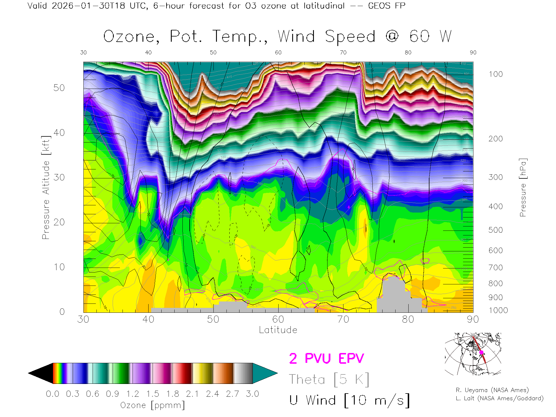 GEOS Forecast Ozone X-Section (60 W)
