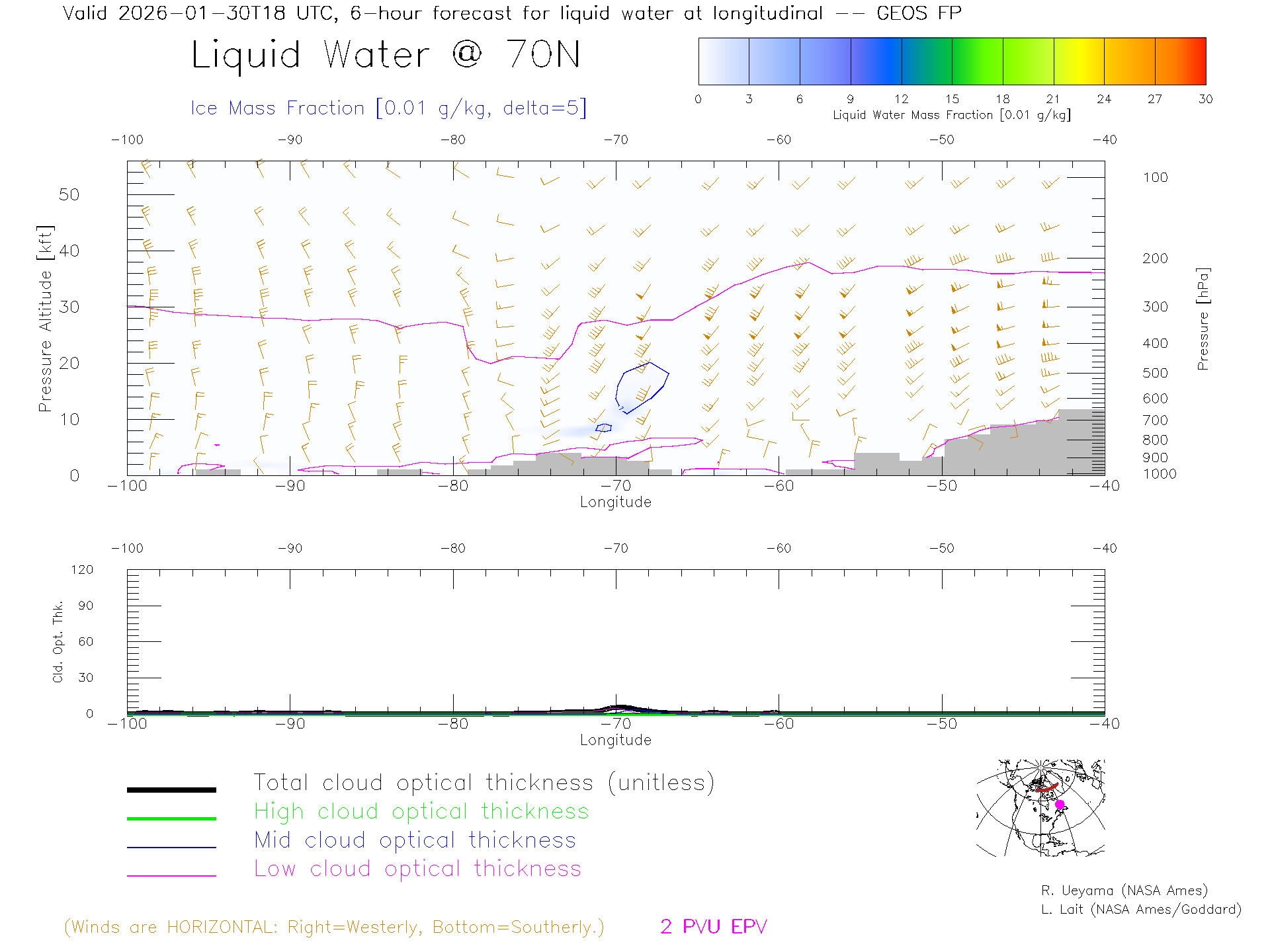 GEOS Forecast Cloud Water Content X-Section (70 N)